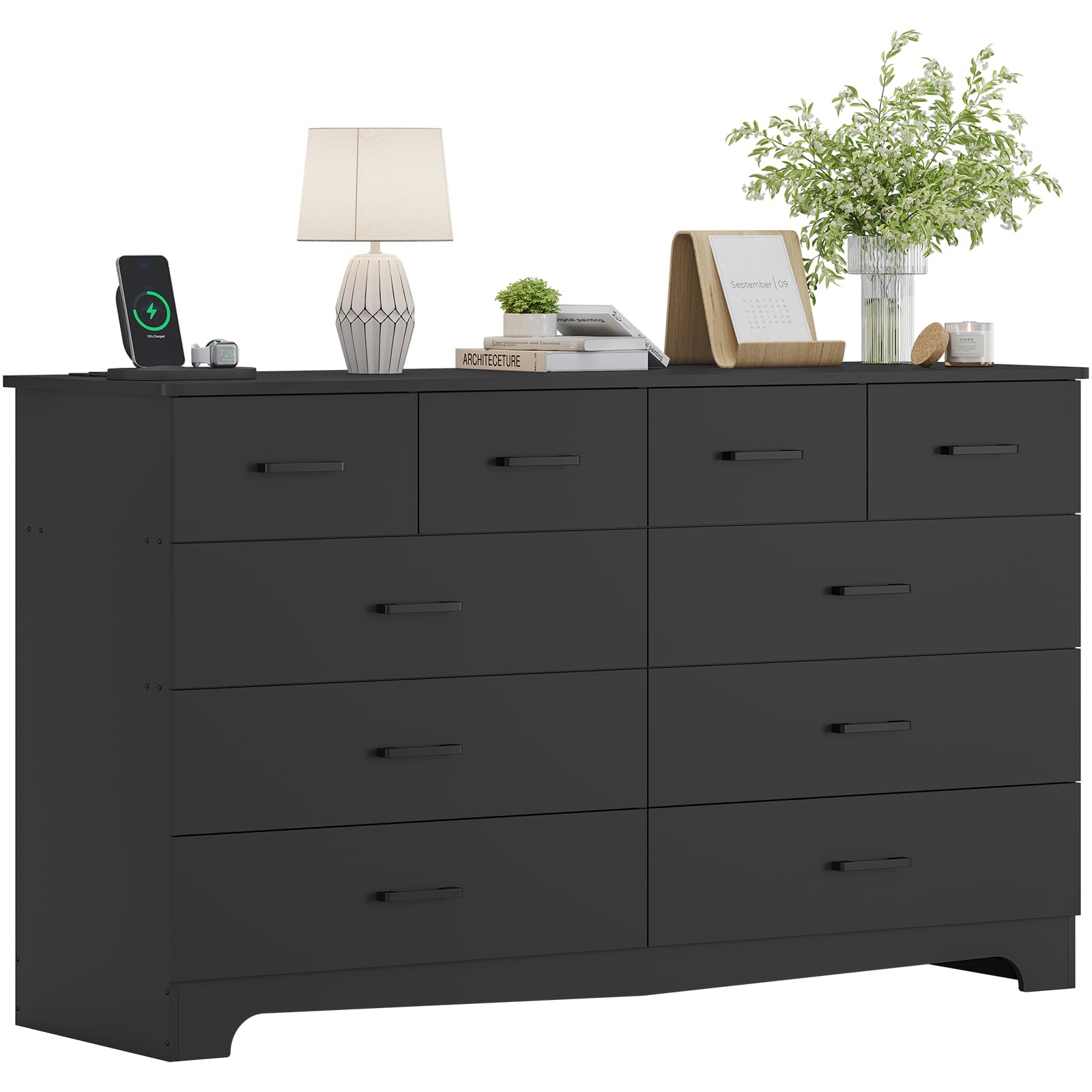 Black Dresser for Bedroom with 10 Drawers, Large Chest of Drawers Storage Organizer