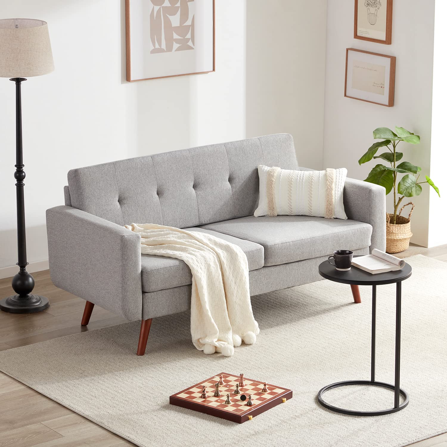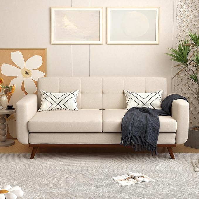 - Firm & durable: This sofa emphasizes simplicity and elegance, it’s 30"D x 65"W x 31.5"H, very perfect for two to three people. We use high-quality solid wood frames that are resistant to cracking and decay. Added anti slip and silent pads at the bottom of the wood to reduce friction between the sofa and the ground, thereby better protecting your floor and sofa base.