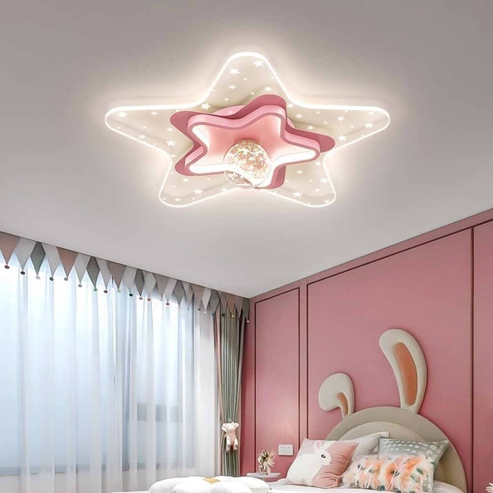 Transform your child's room into a magical space with this charming Nordic-style acrylic ceiling light. Featuring a playful star design in soft pink, this dimmable LED fixture combines whimsical aesthetics with practical functionality, making it the perfect lighting solution for nurseries, children's bedrooms, and playrooms.