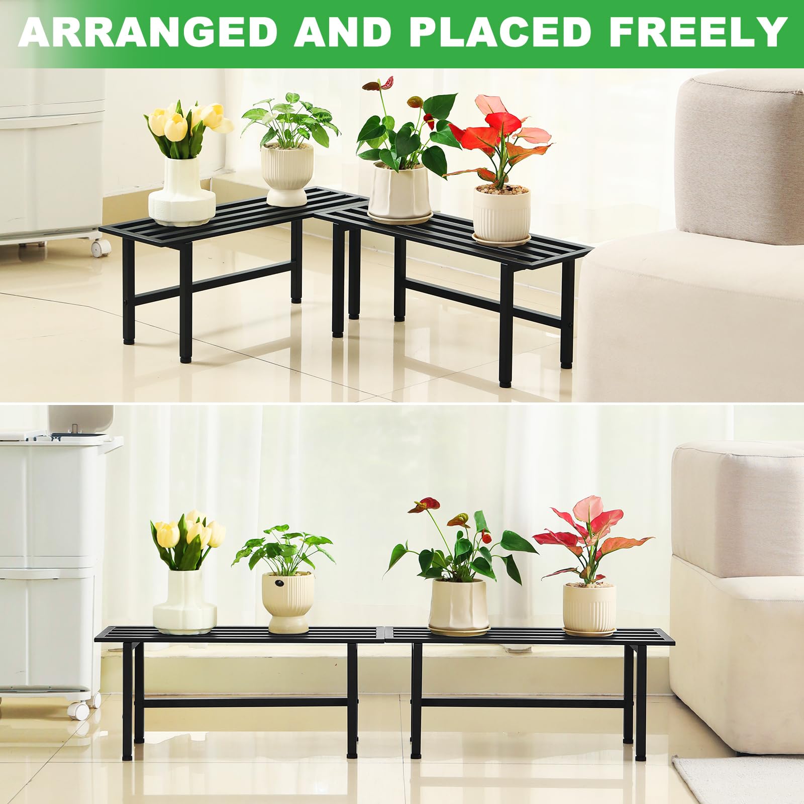 - 1 Tier Plant Stand:2 pieces included which you can combine according to your needs,26 inch long,set of 2 plant stand can give an ample amount of space to place indoor plants/outdoor flowers.