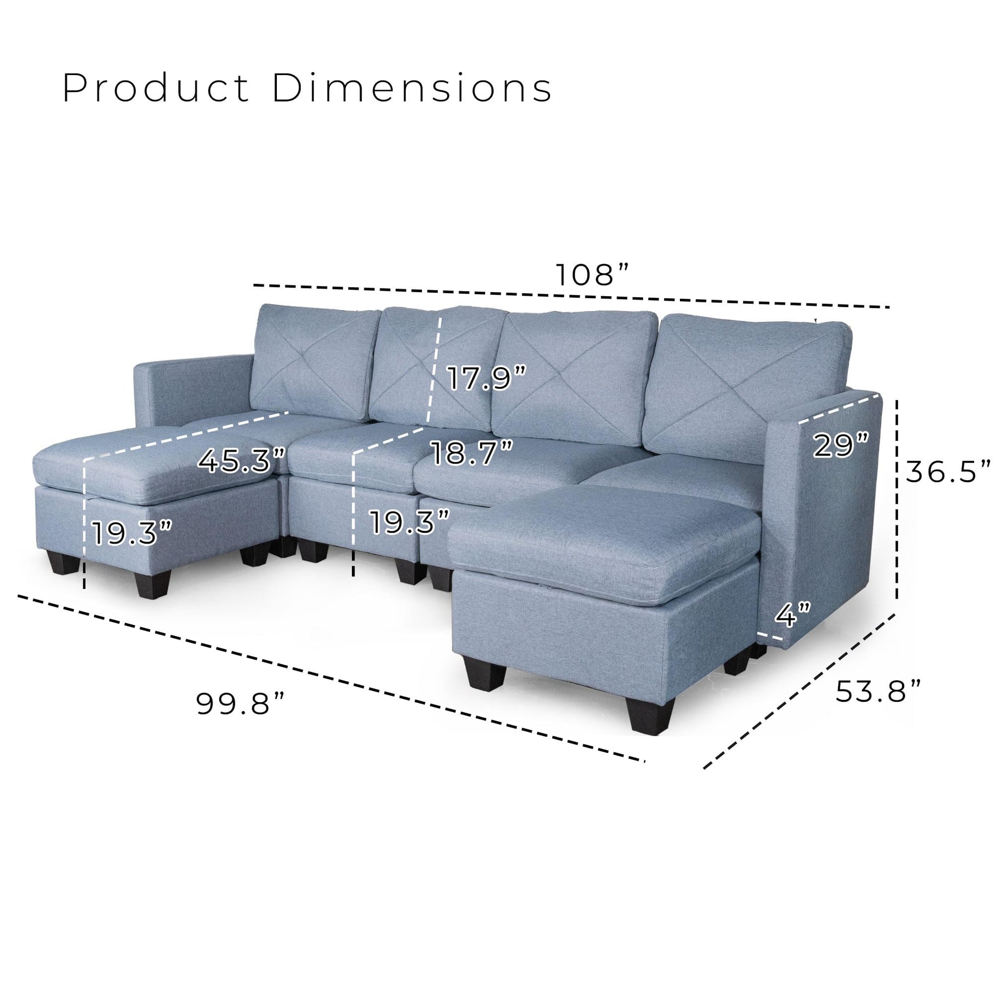 - PREMIUM QUALITY & DESIGN - Sturdy wood frame built with hardwood, upholstered with hand picked soft linen fabric, filled with high density foam and reinforced U-shaped connectors, sectional sofa ensures lasting overall strength and structural integrity. Modular sectional sofa is crafted with meticulous attention to detail, guaranteeing long-lasting support and stability for years to come.