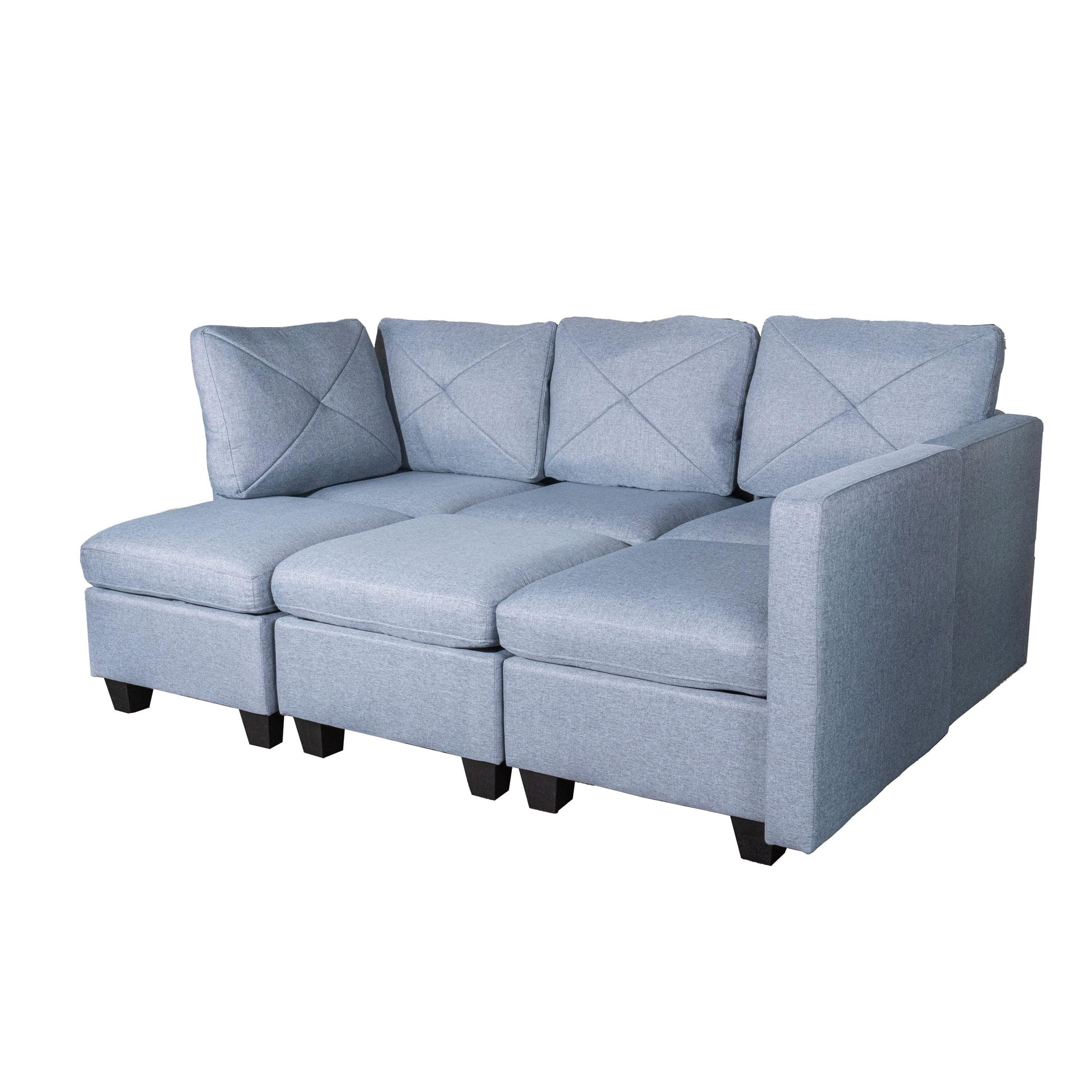 - INCREDIBLE STORAGE SOLUTION - Every placement comes with added storage, offering a discreet solution to keep your living space organized and clutter-free. Perfect space for stashing away blankets, pillows, decorations and more. The 2 included ottoman can serve as footrests, additional seating, or even as coffee table when combined with a tray - adding to the modular's adaptability.