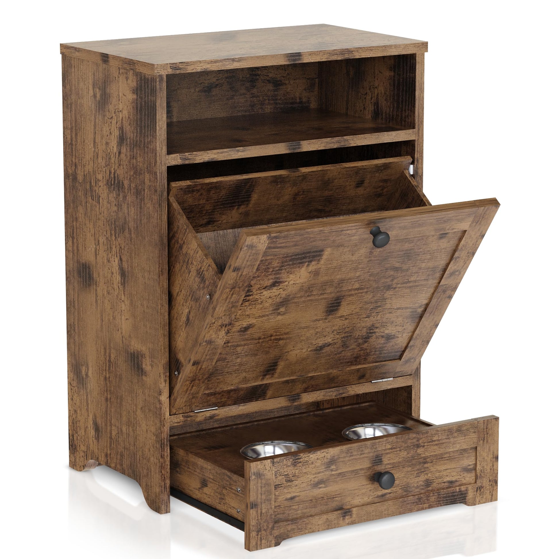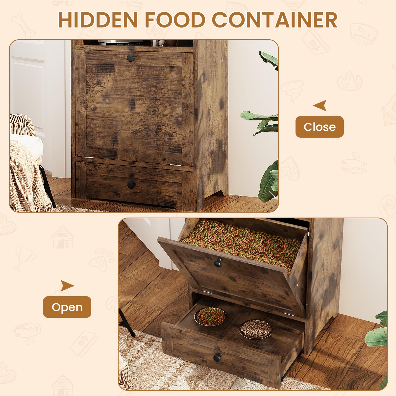 - Integrated Storage Cabinet: Spacious compartment keeps food, treats, and feeding supplies organized in one place
