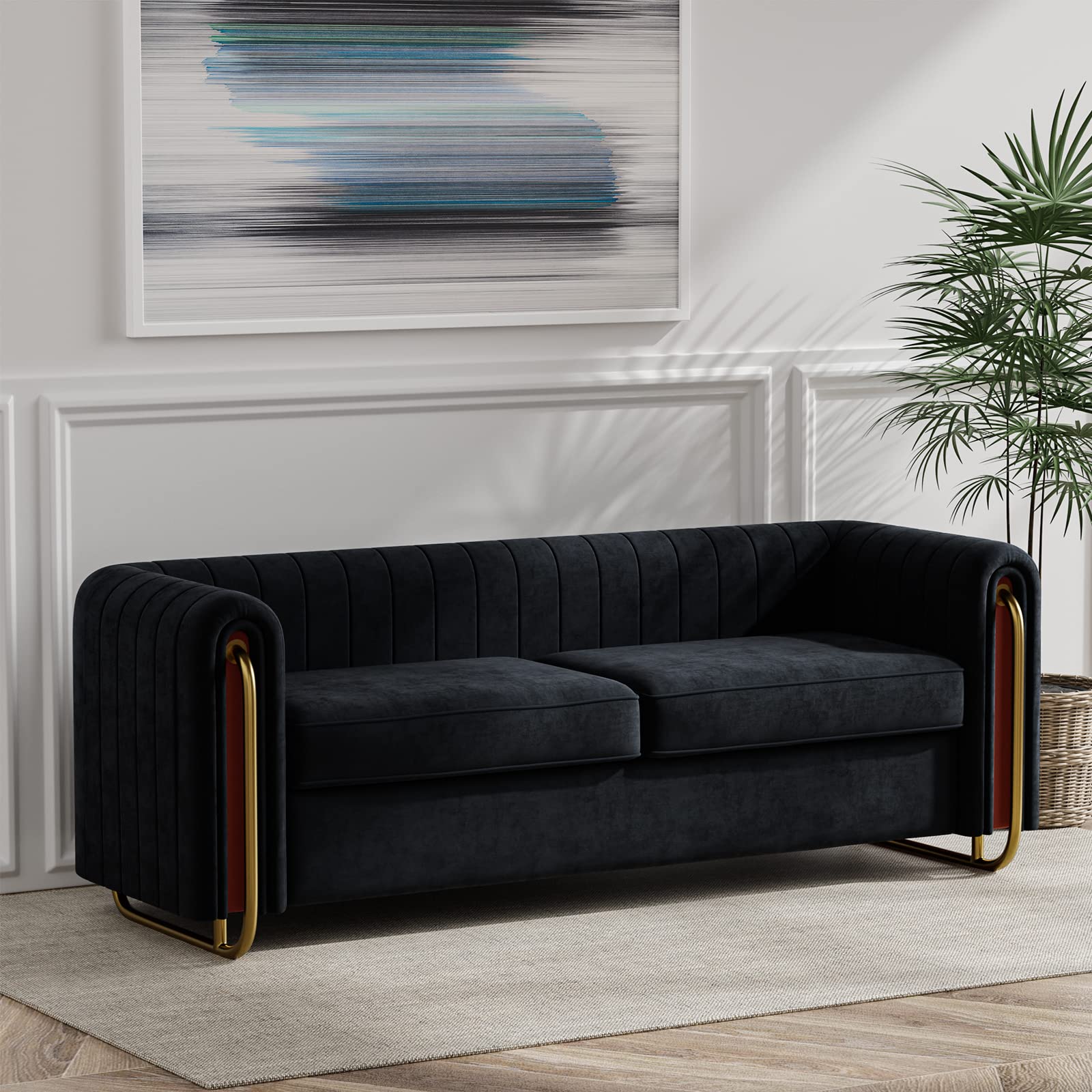 - Modern Sofa: Modern velvet sofa streamlined design decorated with gold metal legs. Simple and advanced, a great addition to completing your living room bedroom office, perfect accent furniture to match your decor.