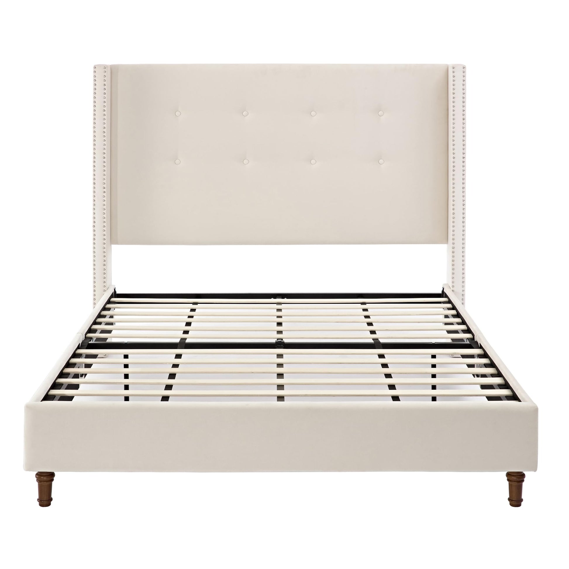 Upholstered Bed Frame, 54" High Headboard with Nailhead Trim Wingback