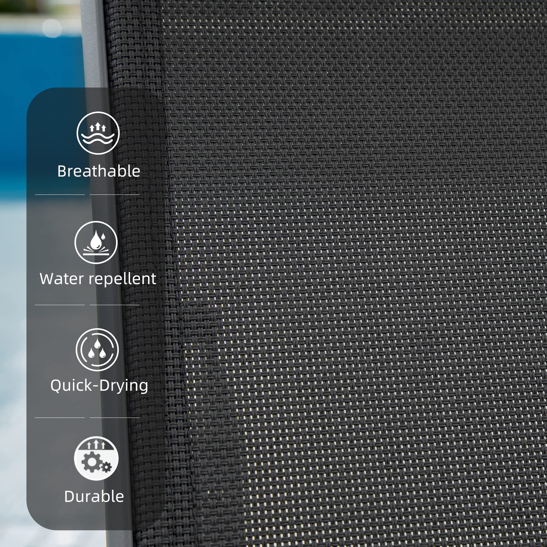 - High-Quality Textilene: The seat and backrest are made of textilene fabric, which is water-repellent and UV- resistant,fast drying and breathable.You'll feel pretty comfortable lying on it even during hot summer day.