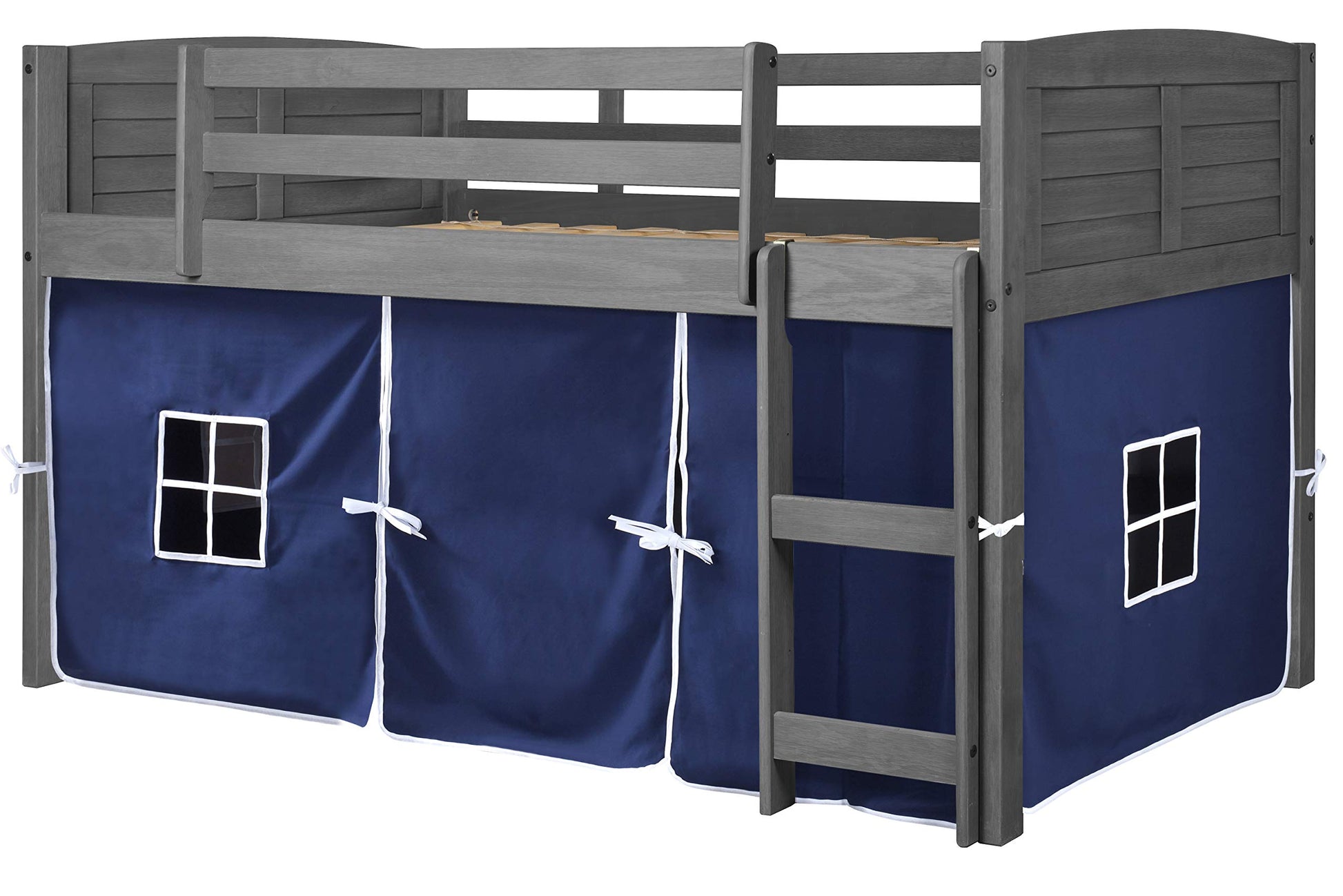 Louvered Low Loft with Blue Tent, Twin