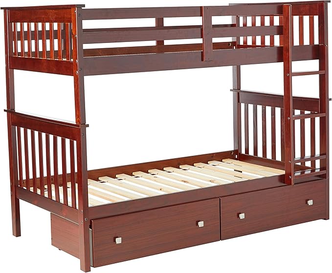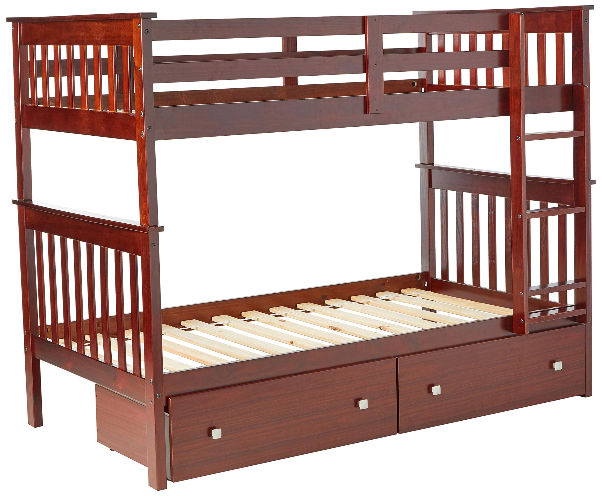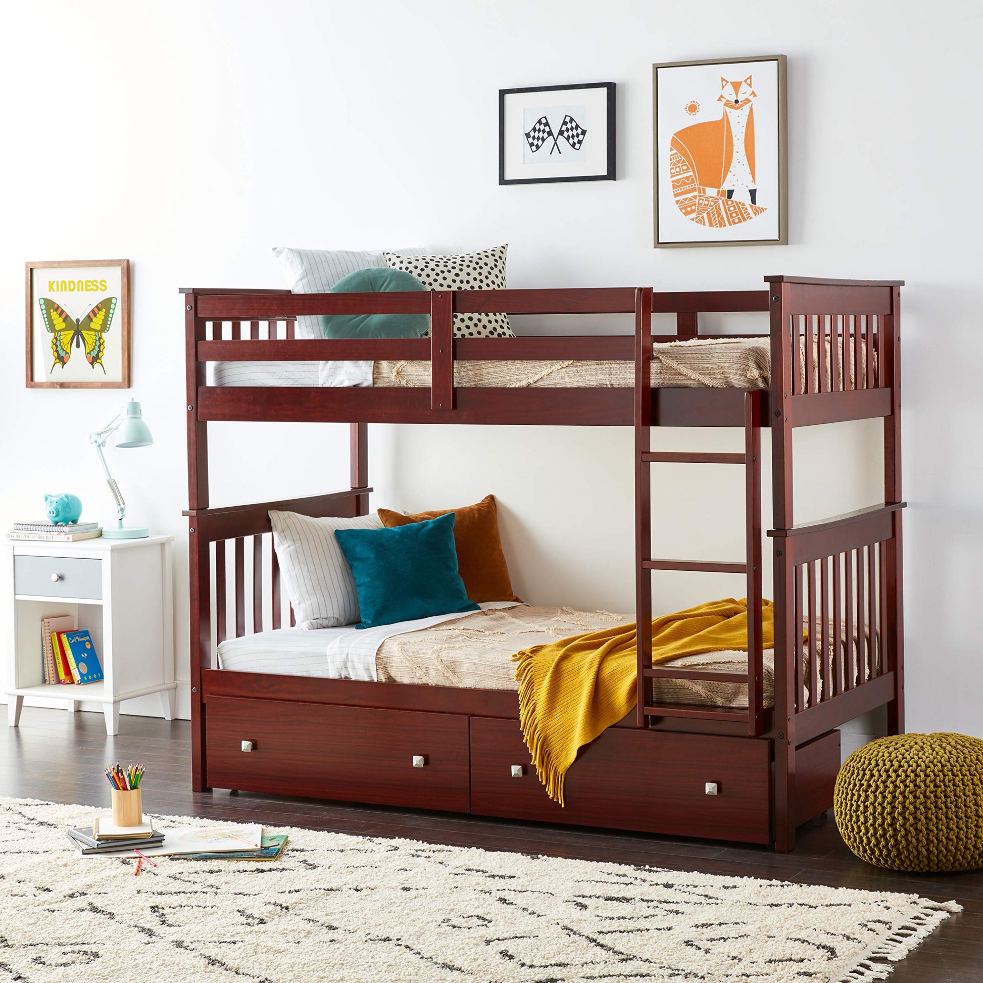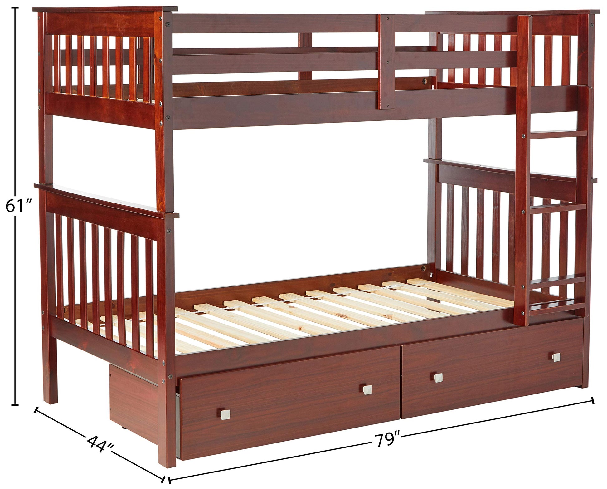 Twin/Twin Dark Cappuccino Mission Bunk Bed with Under Bed Drawers