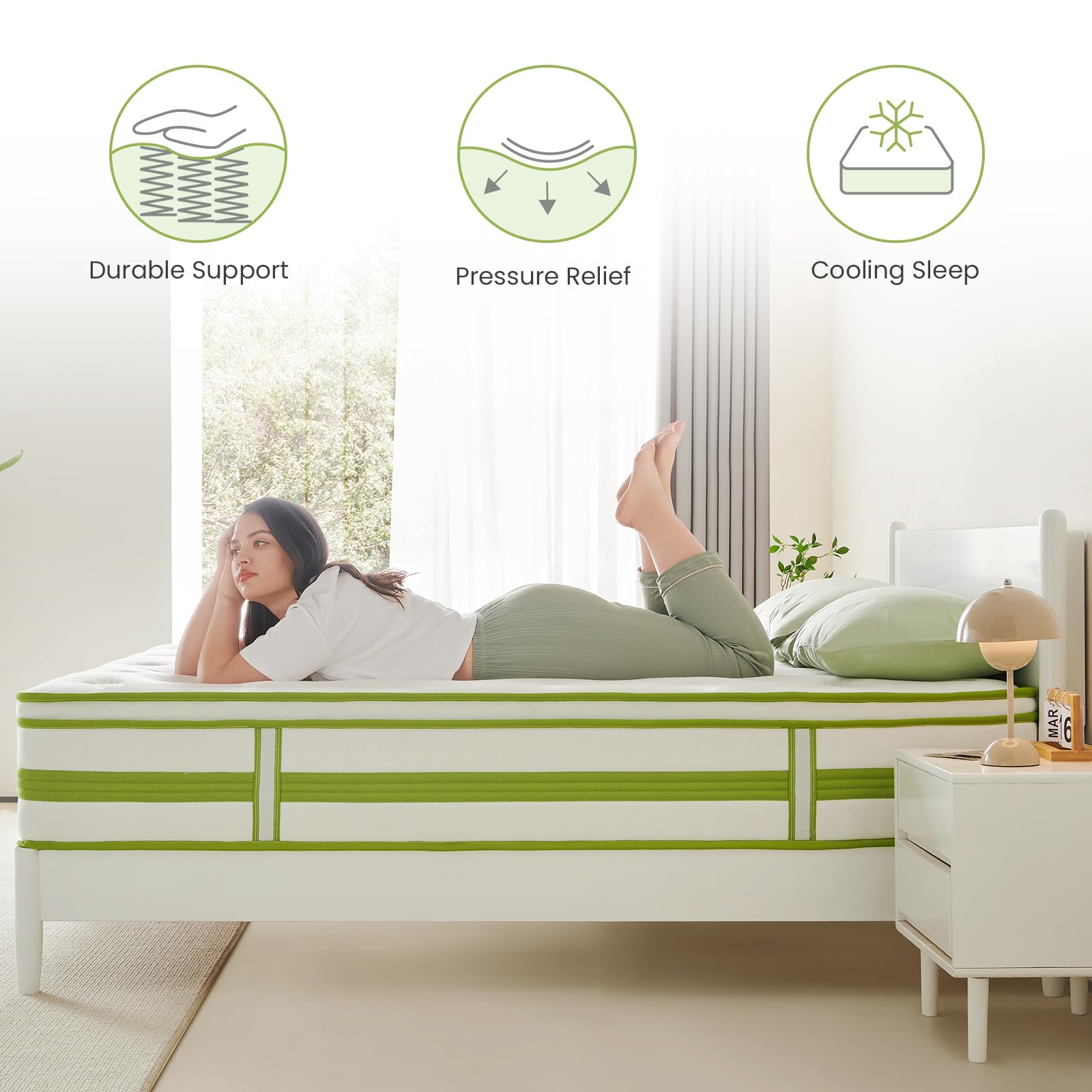 - Dourxi's 12 inch hybrid mattress full is a visual treat that exudes sunny and vibrant energy, thanks to its refreshing green color. It is designed to help you unwind and de-stress after a long day of work or study, so that you can return home to enjoy a relaxing life in good spirits.