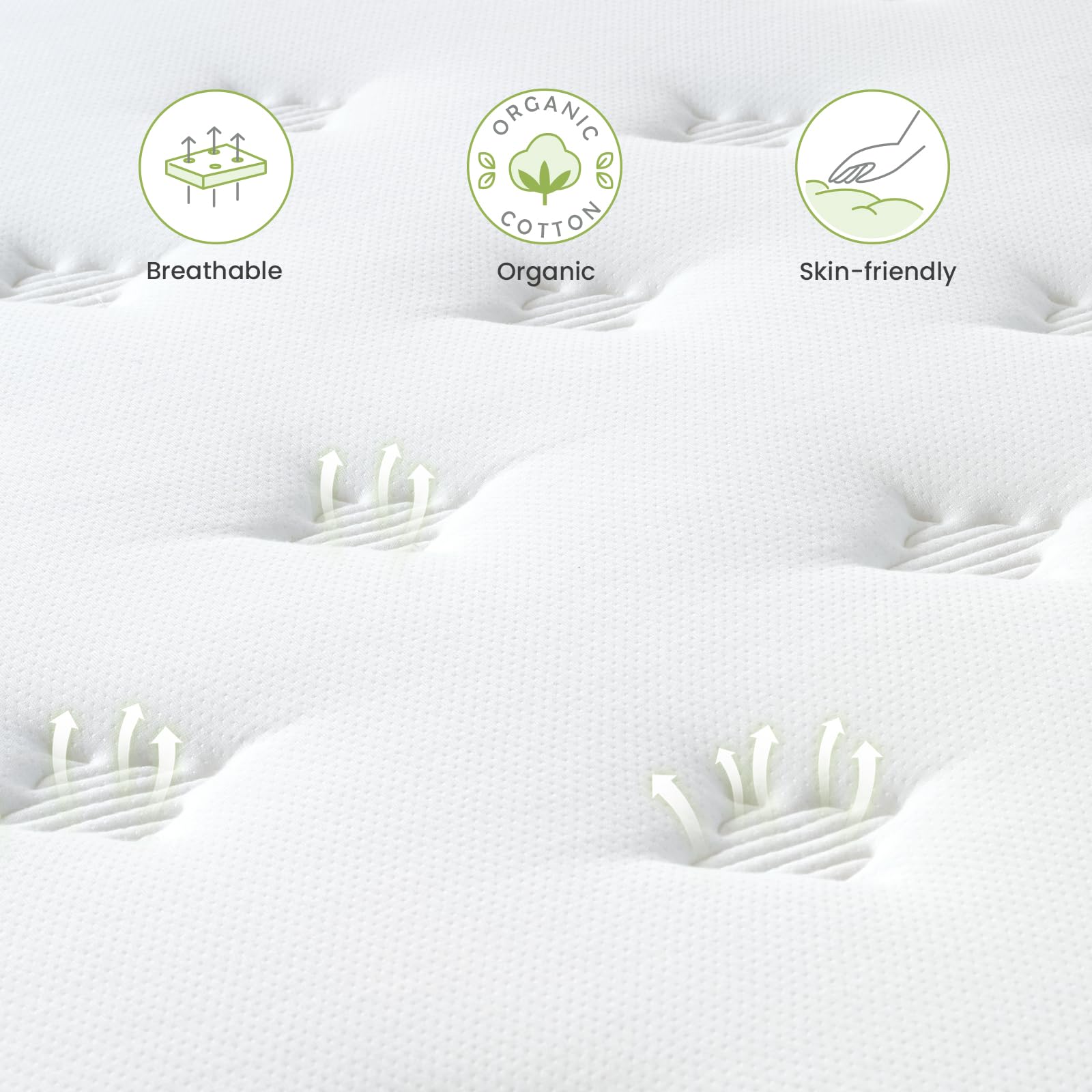 - Under the cooling gel particles in the memory foam and the air circulation between the high elastic coils working together, our full mattress has increased breathability greatly. This unique design facilitates heat dissipation from the contact surface between your body and the mattress, keeping your body comfortable and dry while you sleep.