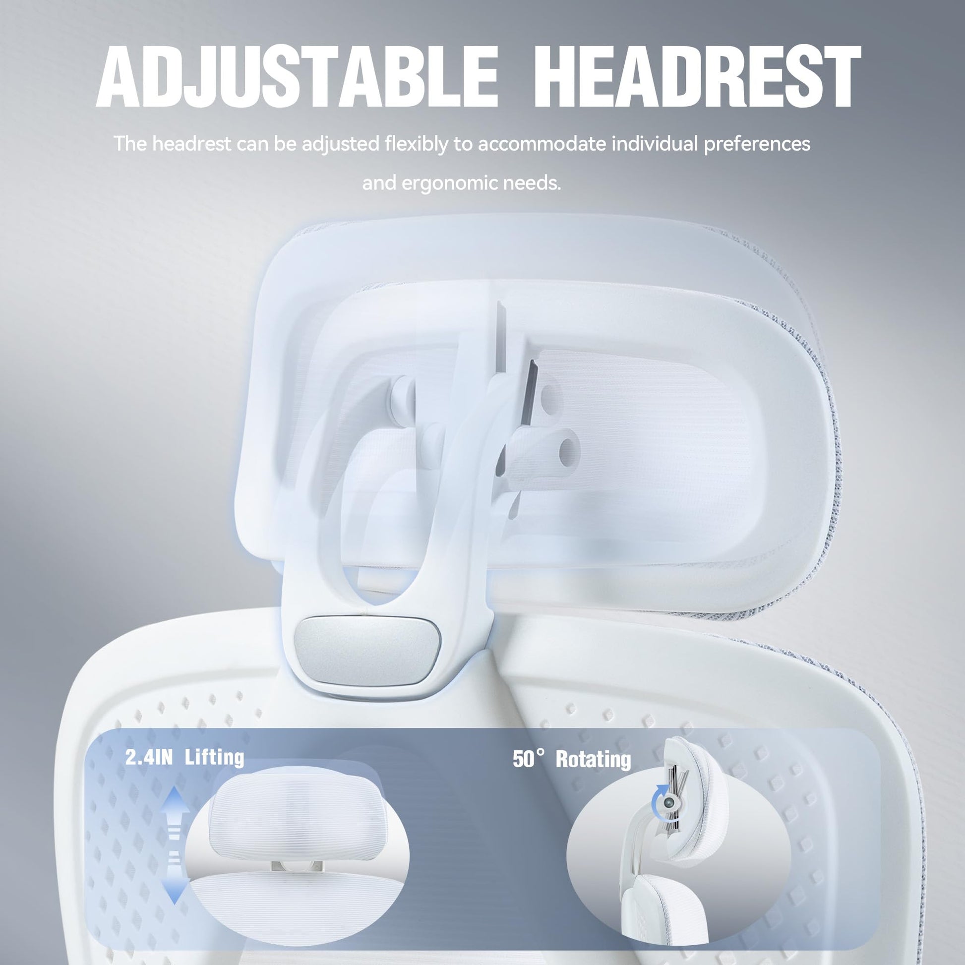 Dowinx Ergonomic Office Chair,Breathable Mesh Computer Chair with Pocket Spring Cushion,Comfy Desk Chair with Adjustable Lumbar Support and Headrest,Steel Base Swivel Task Chair with Footrest,White