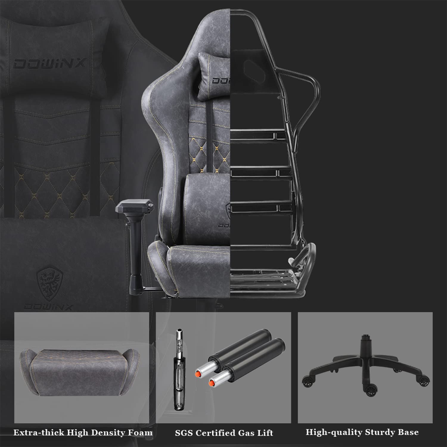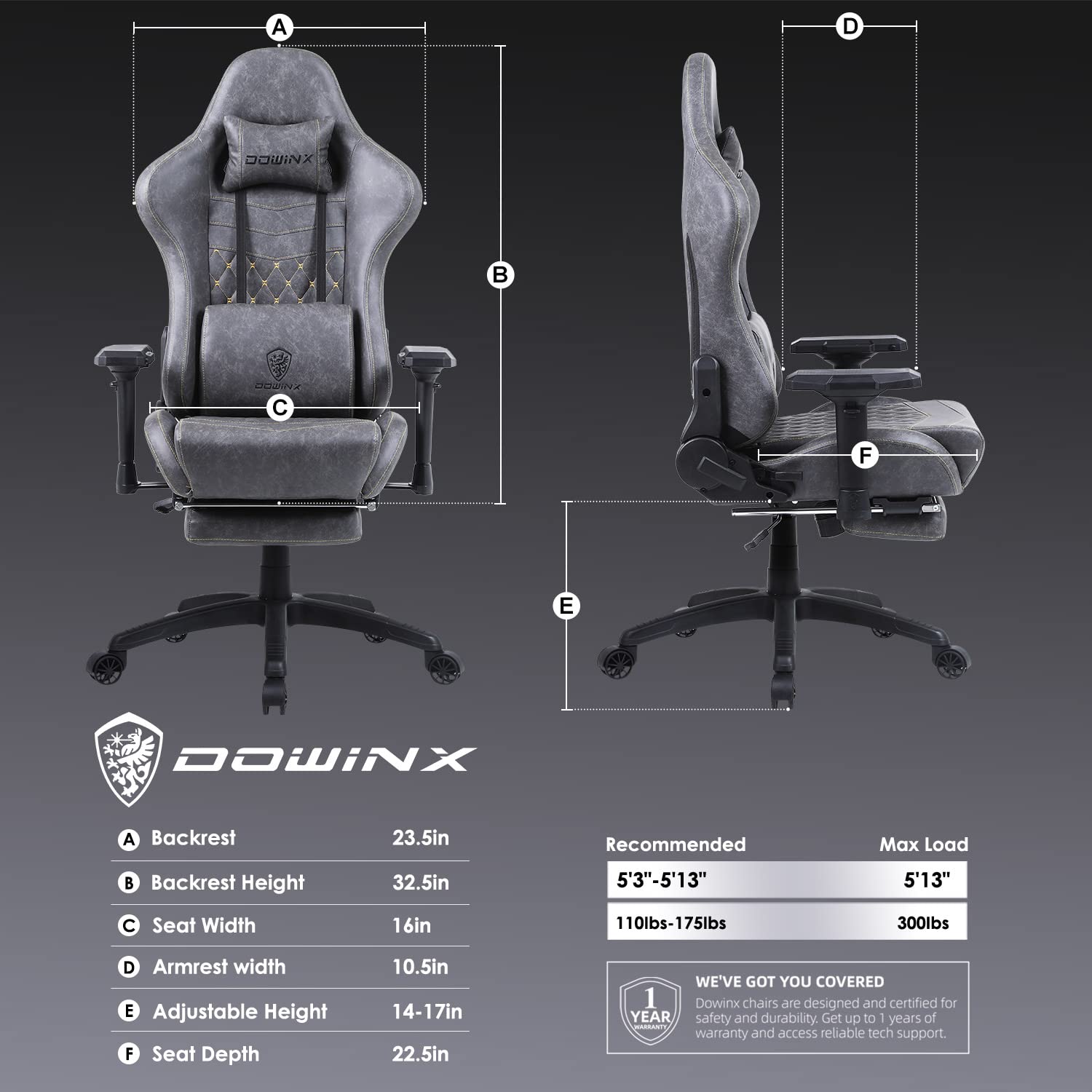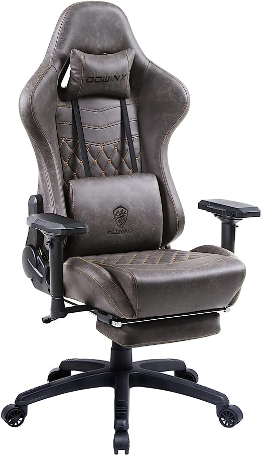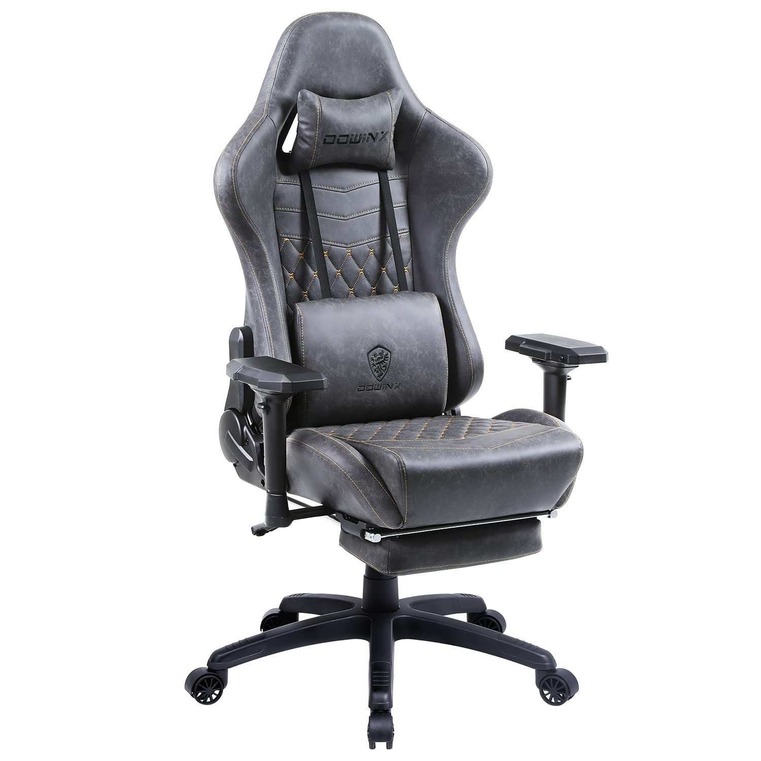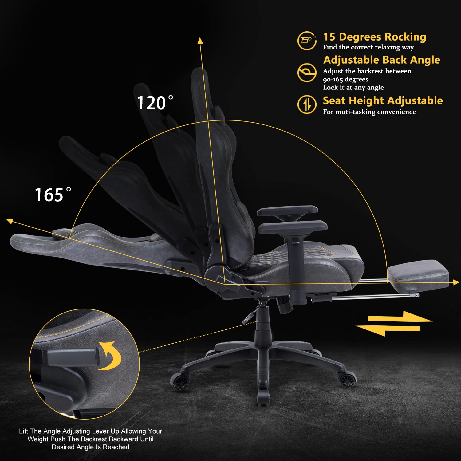 - ERGONOMIC DESIGN 4D armrests gaming chair with USB cable power supply massager that can drive by a USB port on computer, car, power switch or even power bank. Best masseur for users who need to sit for a long time. Vintage leather style matches all locations.