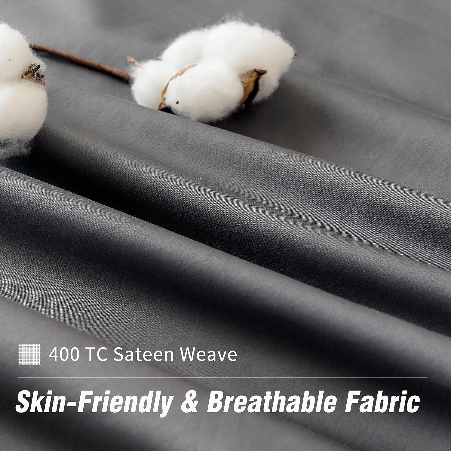 - 100% Cotton Sheets You can always believe the comfort that pure cotton brings you. This queen sheet set is made of 100% natural cotton, 400 thread count sateen weave, creating a super soft and luxurious sleeping experience for you. The manufacturer and material are all Oeko-tex Standard 100 certified, ensuring a restful sleep.