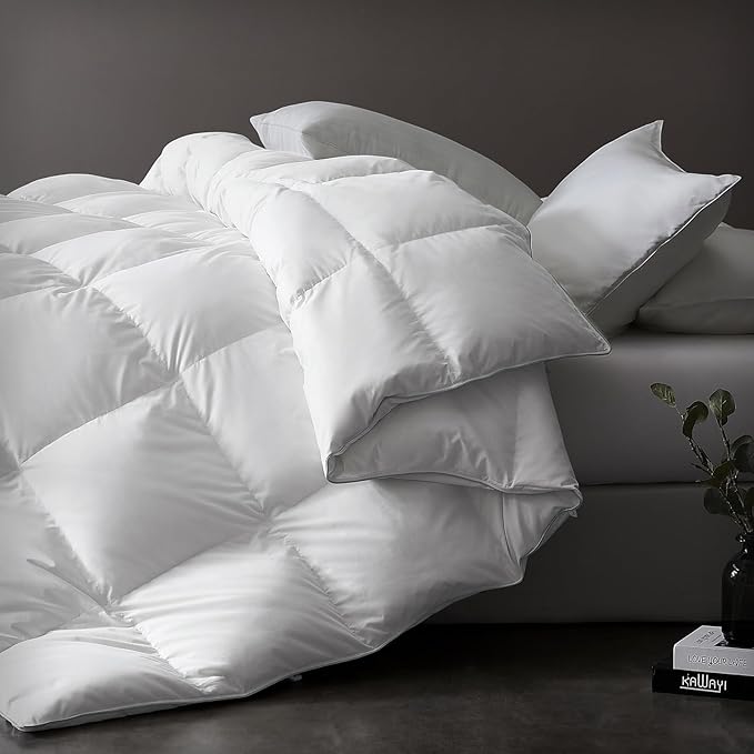 - Premium Fabric: The surface of goose down comforter is a blended fabric of 60% cotton and 40% polyester, which is noise-cancelling and makes you roll over mute. It has the advantage of softness, breathability, high strength and down proof