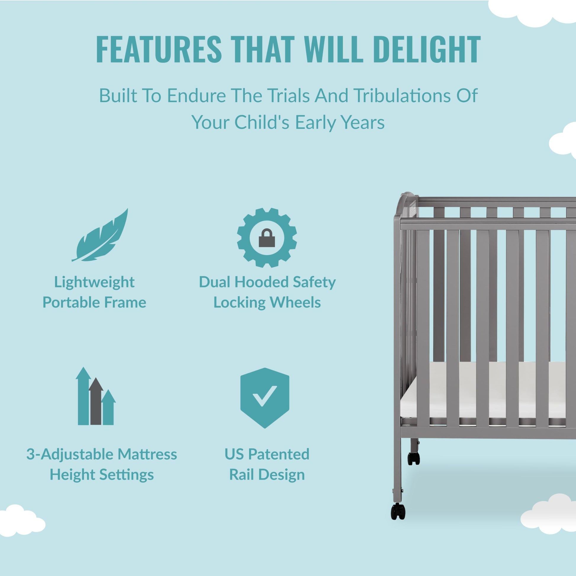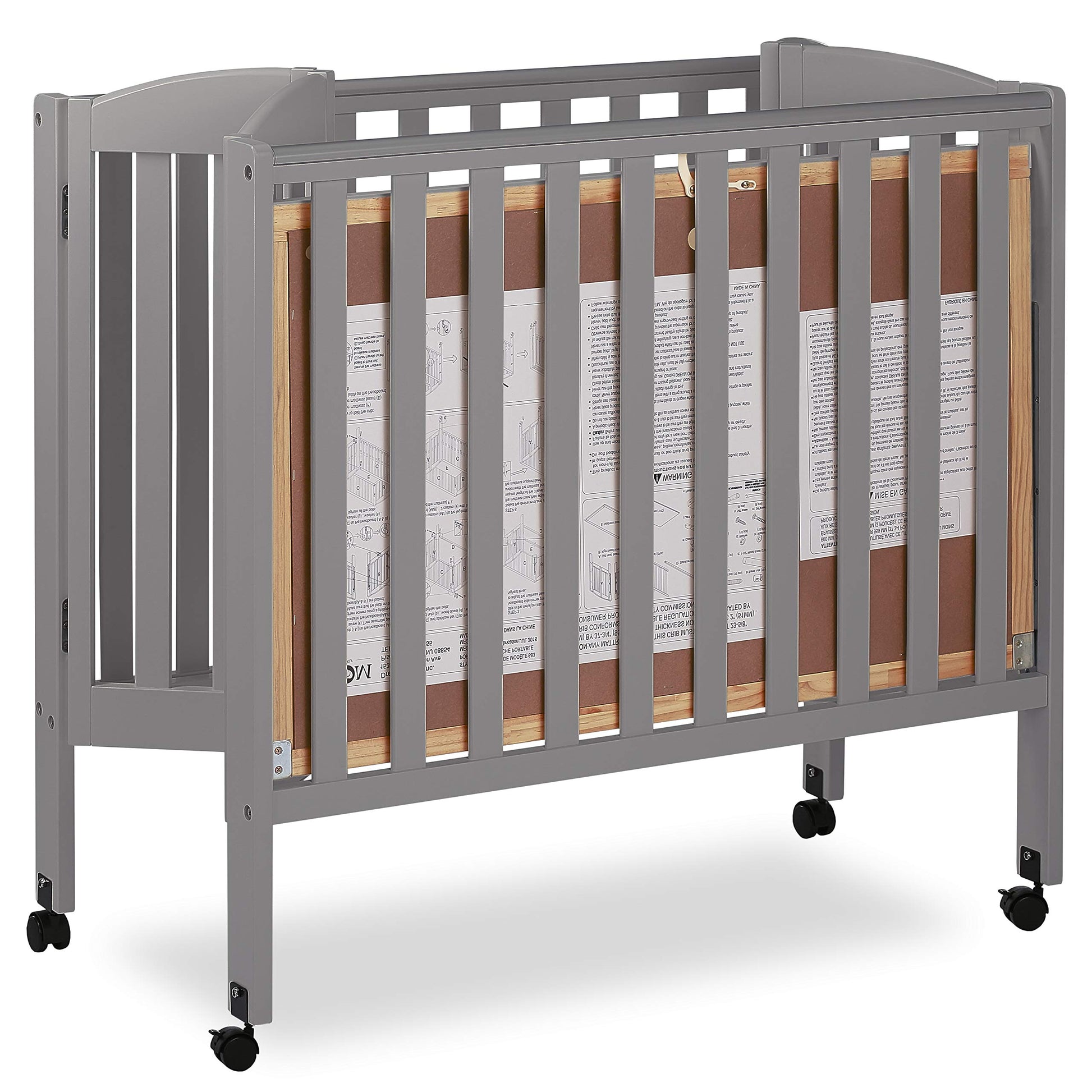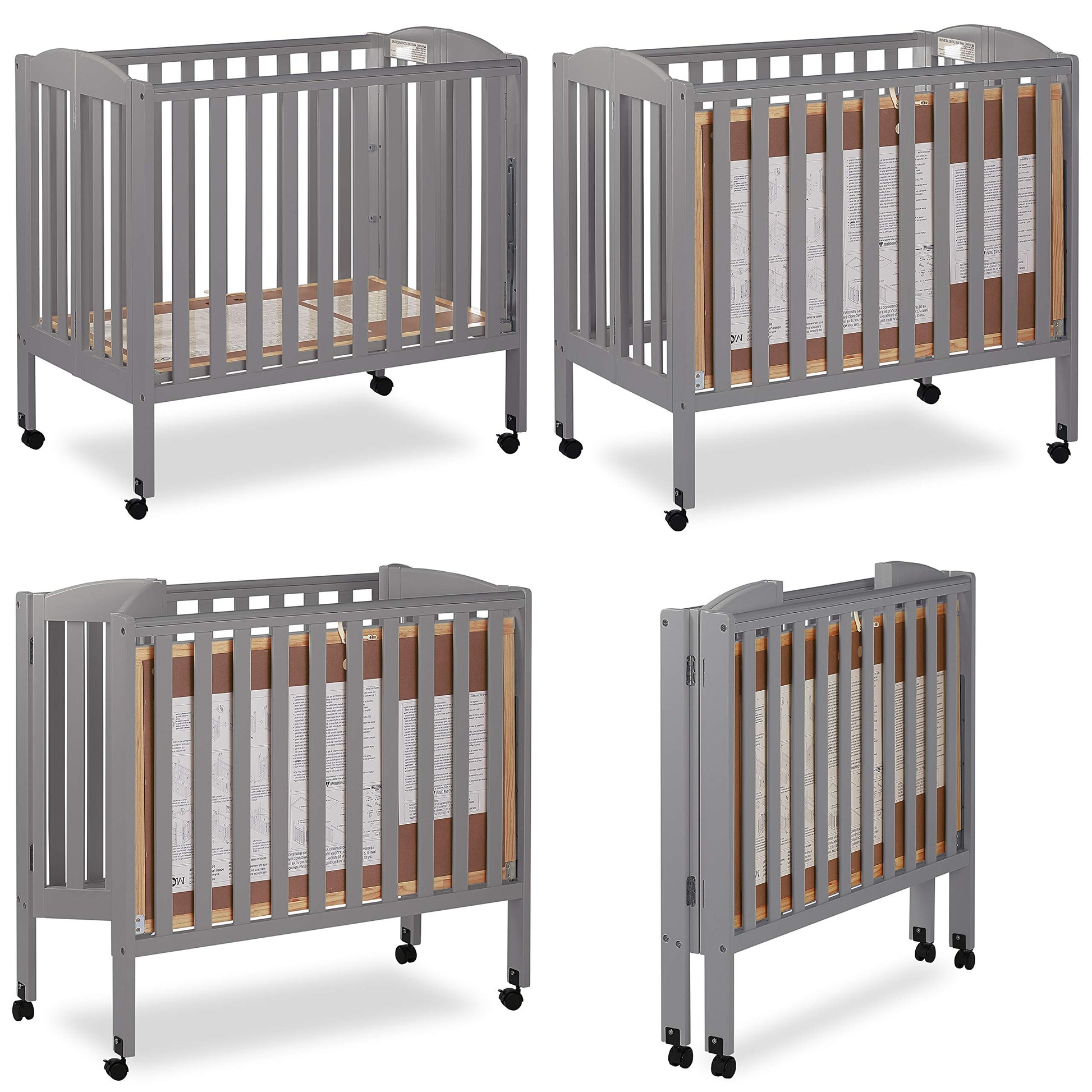 3 in 1 Portable Folding Stationary Side Crib in Steel Grey, Greenguard Gold Certified,