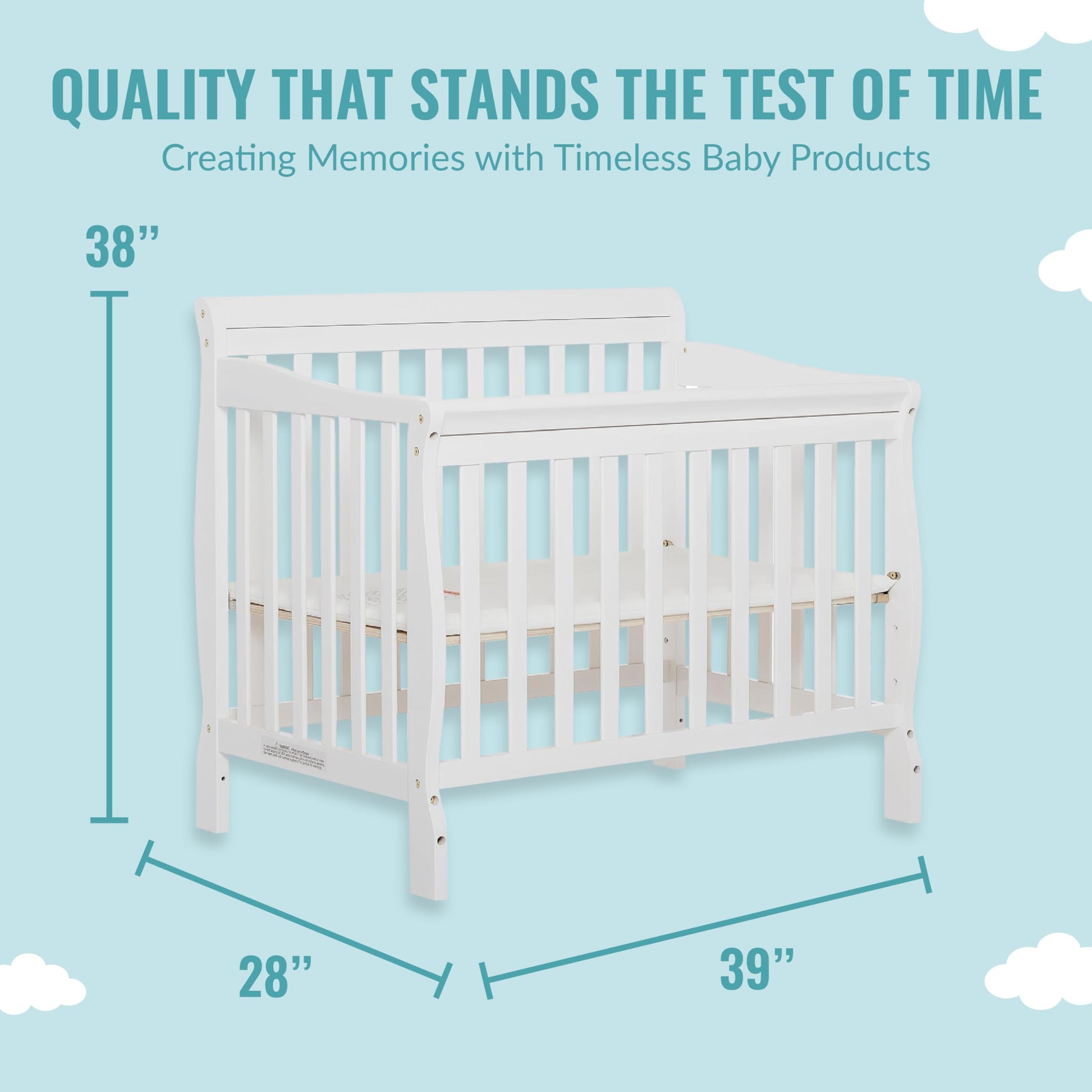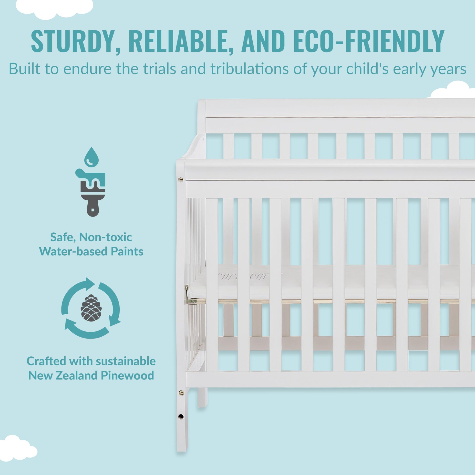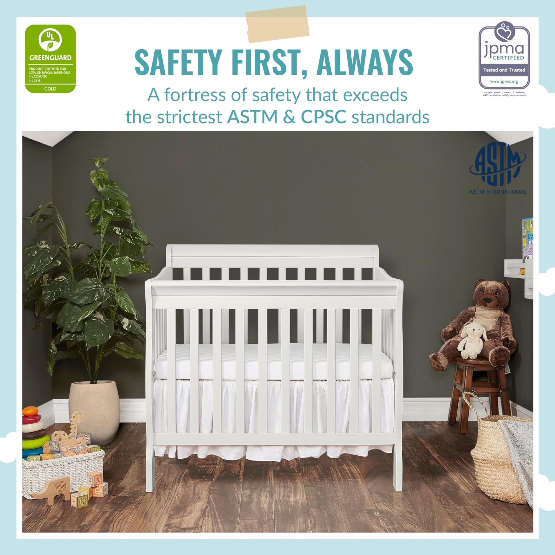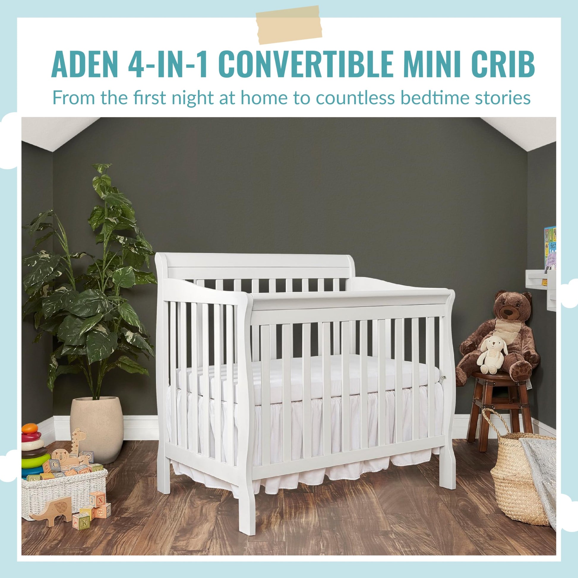 Aden 4-in-1 Convertible Mini Crib In White, Greenguard Gold Certified, Non-Toxic Finish