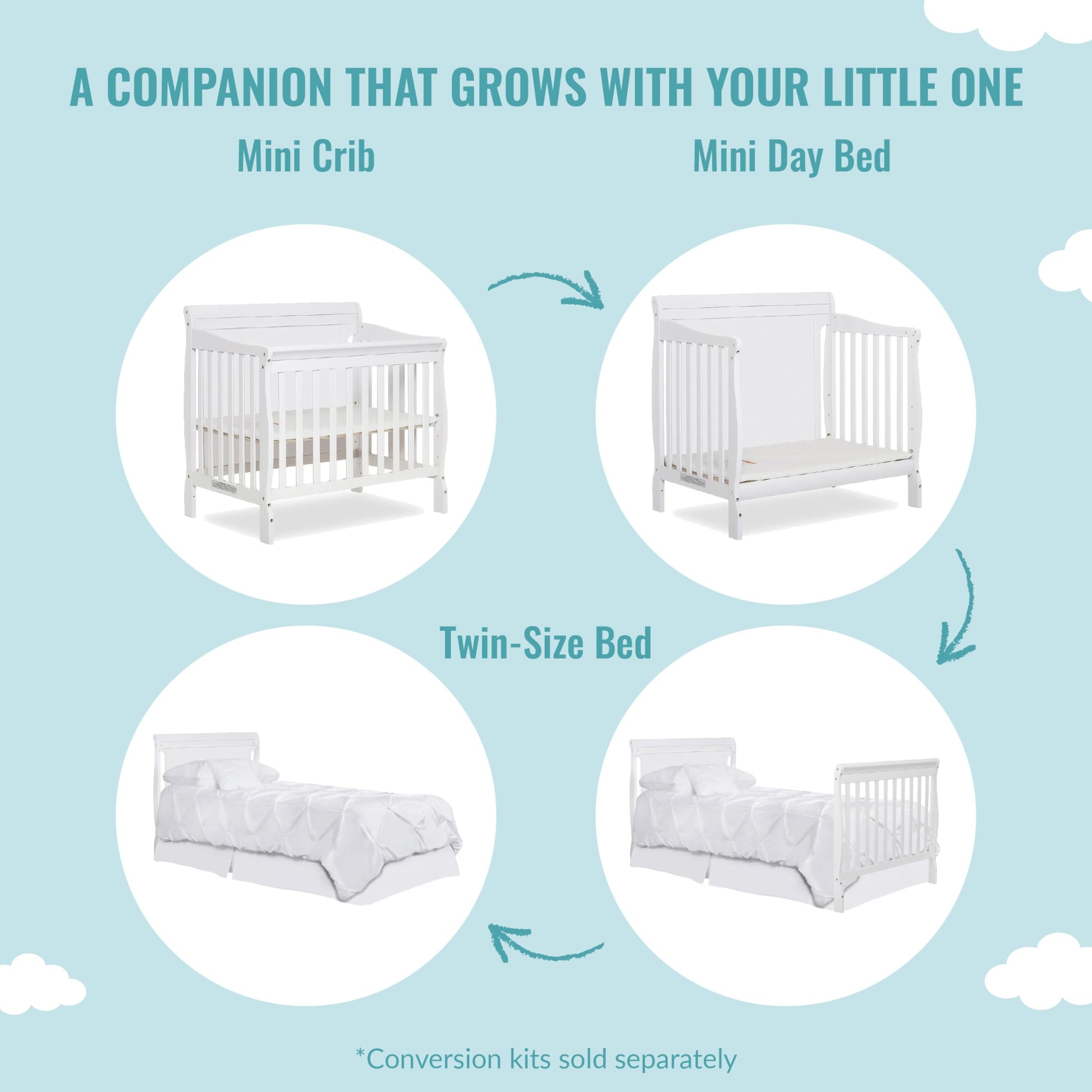 - 4-in-1 CONVERTIBILITY OPTIONS - The Aden grows along with your child. You can convert the crib into a mini daybed and a twin size bed and it has a convenient 3-position mattress support system(Twin Size Rail and Bed frame sold separately)