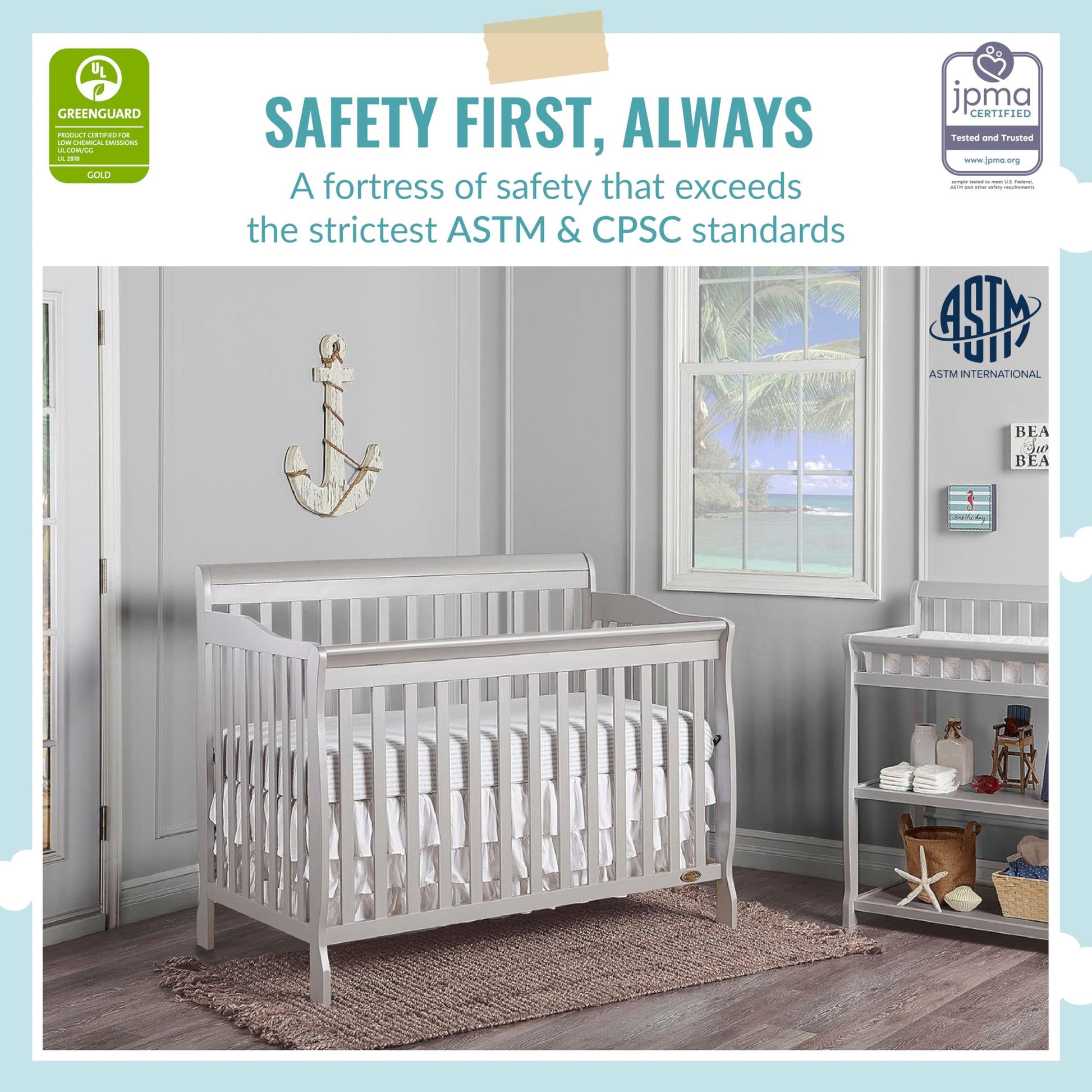 - SAFETY FIRST - ALWAYS: This crib is JPMA Certified to meet or exceed all safety standards set by the CPSC & ASTM. All of our products are tested by 3rd party labs for lead and other toxic elements to meet or exceed CPSC and ASTM safety standards