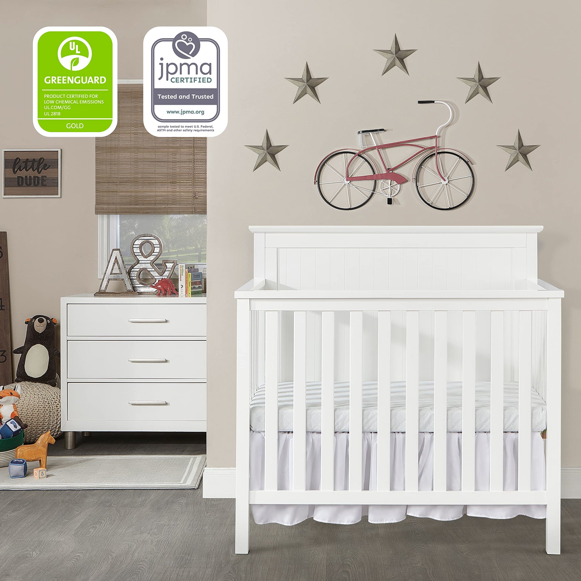 Ava 4-in-1 Convertible Mini Crib in White, Greenguard Gold Certified, Non-Toxic Finish,