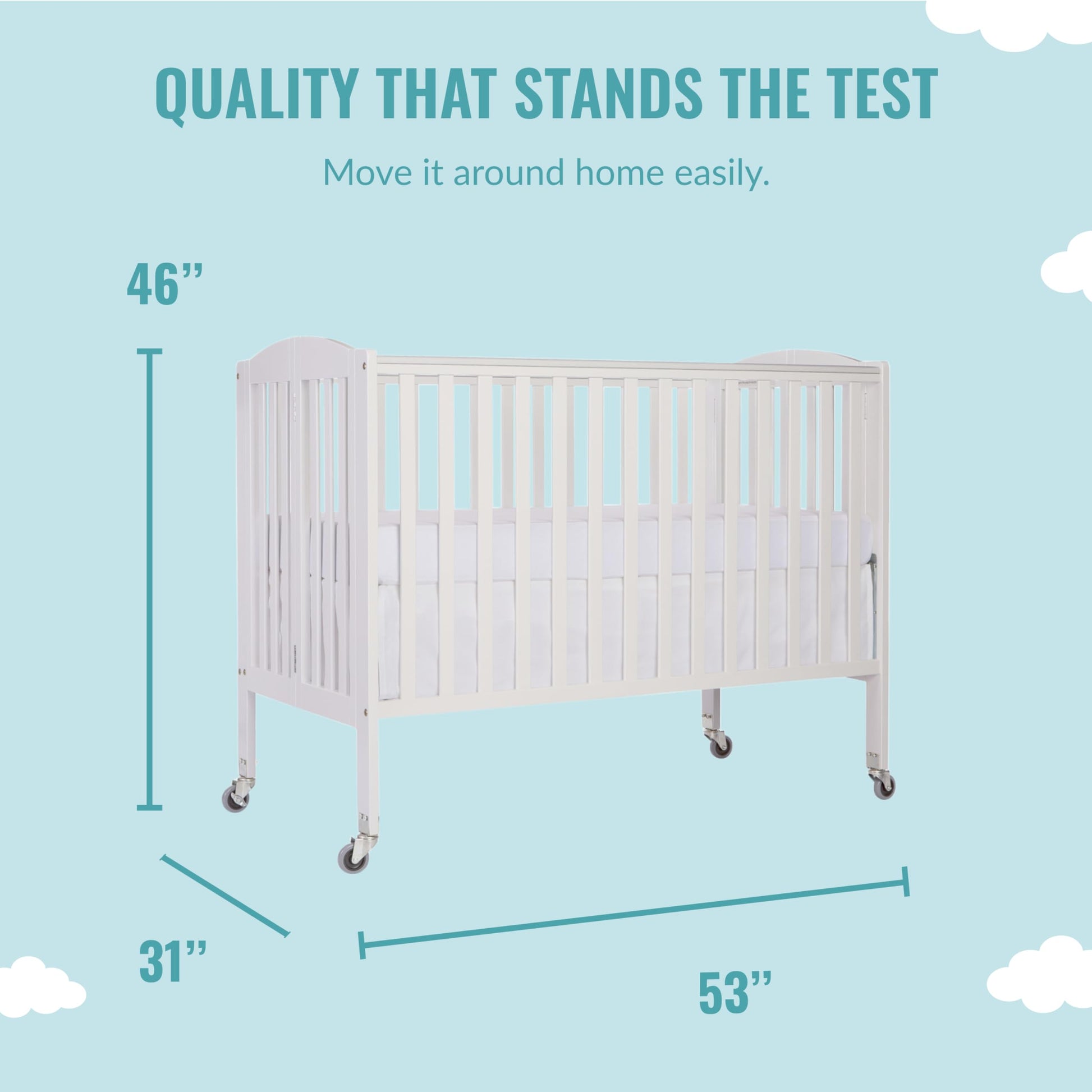- COMPACT & PORTABLE: When the crib is not needed, simply fold flat using the patented folding system and store. No disassembly required - unfold and use again when needed! Lightweight frame and wheels allow you to move it easily from room to room