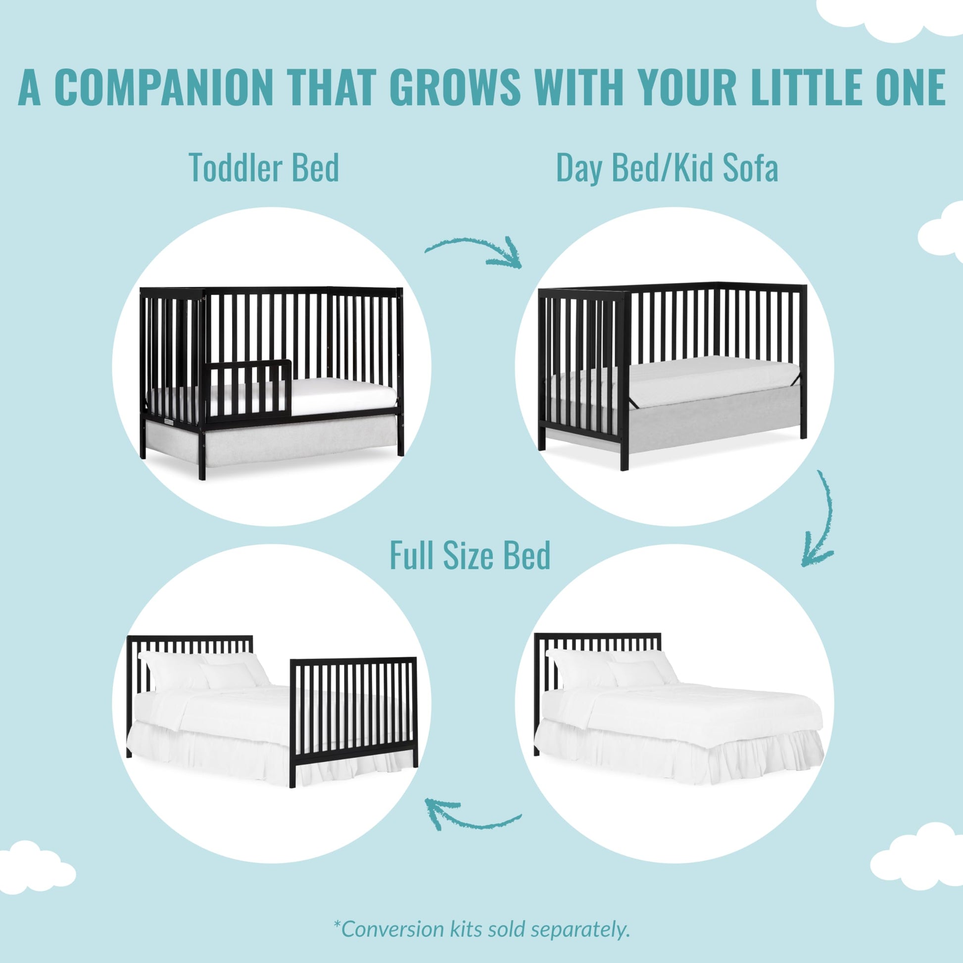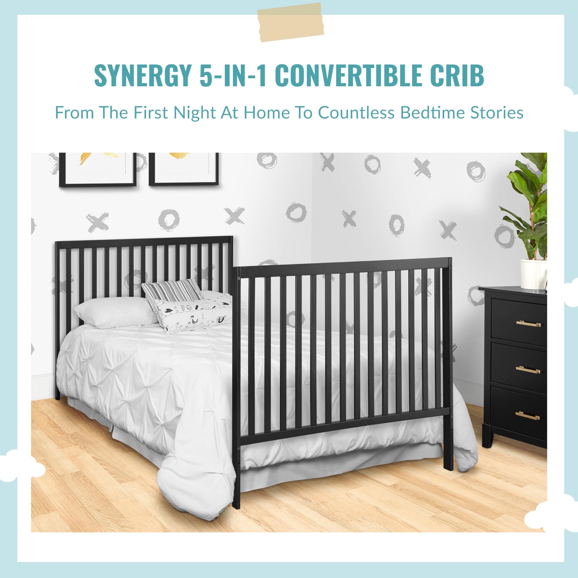 - 5-IN-1 CONVERTIBLE CRIB - A lifetime investment, the Synergy grows with your child, easily converting from a crib into a toddler, day and full-size bed; Toddler guardrail, stabilizer and full-size rail sold separately; Features 3 mattress height settings