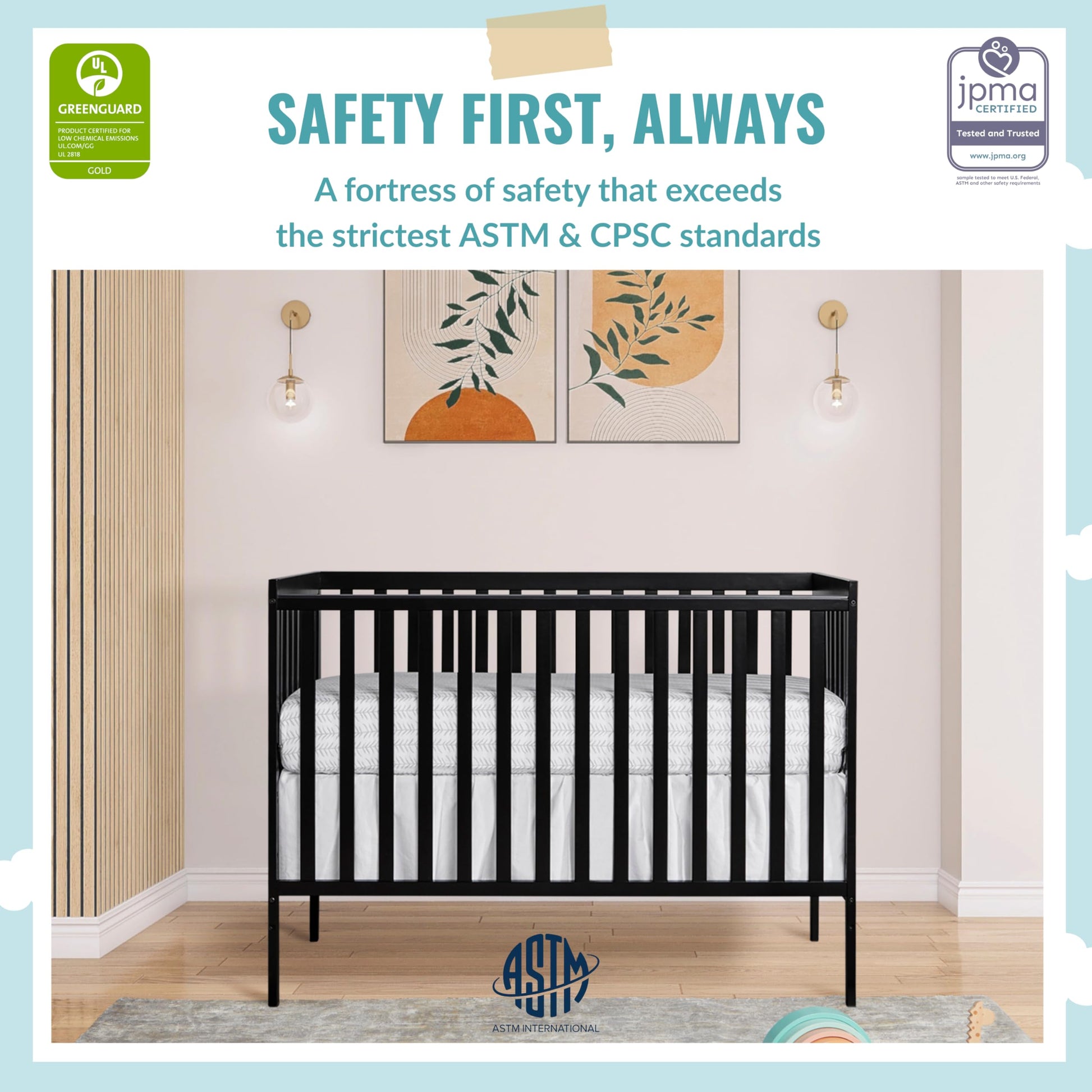 - SAFETY FIRST ALWAYS - This crib is JPMA Certified to meet or exceed all safety standards set by the CPSC & ASTM; All of our products are tested by 3rd party labs for lead and other toxic elements to meet or exceed CPSC and ASTM safety standards