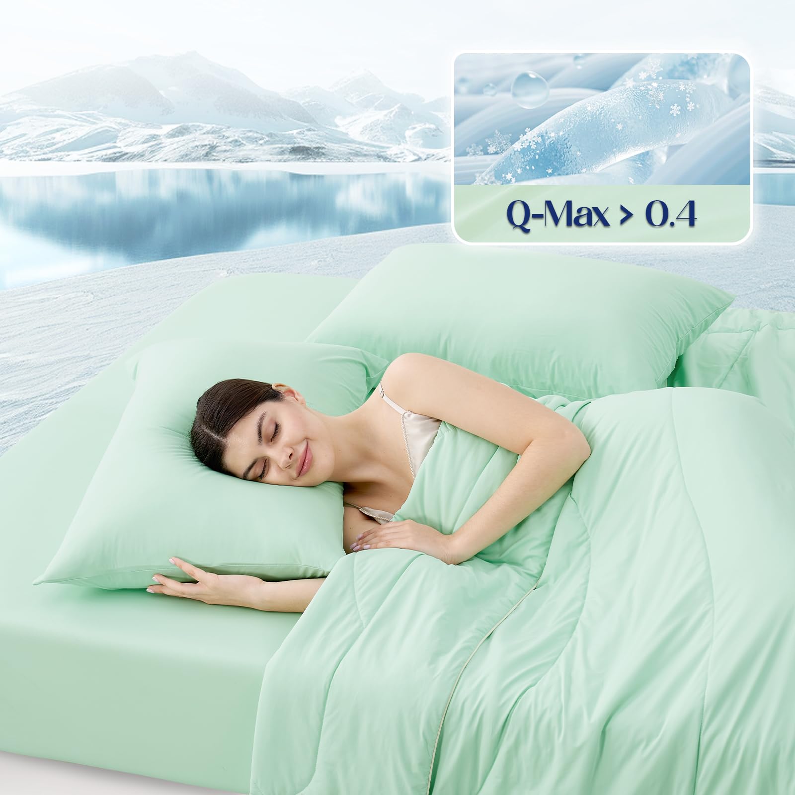 - Experience unparalleled comfort with our Cooling Fitted Sheet Sets, featuring a Q-Max value exceeding 0.4 for perfectly comfort all night. Enjoy the rejuvenating Aerocool Cooling Effect, ensuring a refreshing sleep experience even on the hottest nights.