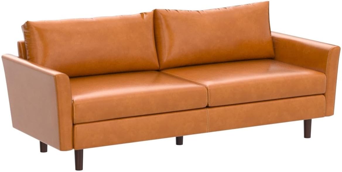 80'' Faux Leather Sofa Couch, Mid-Century Modern Sofa with Solid Wooden Frame