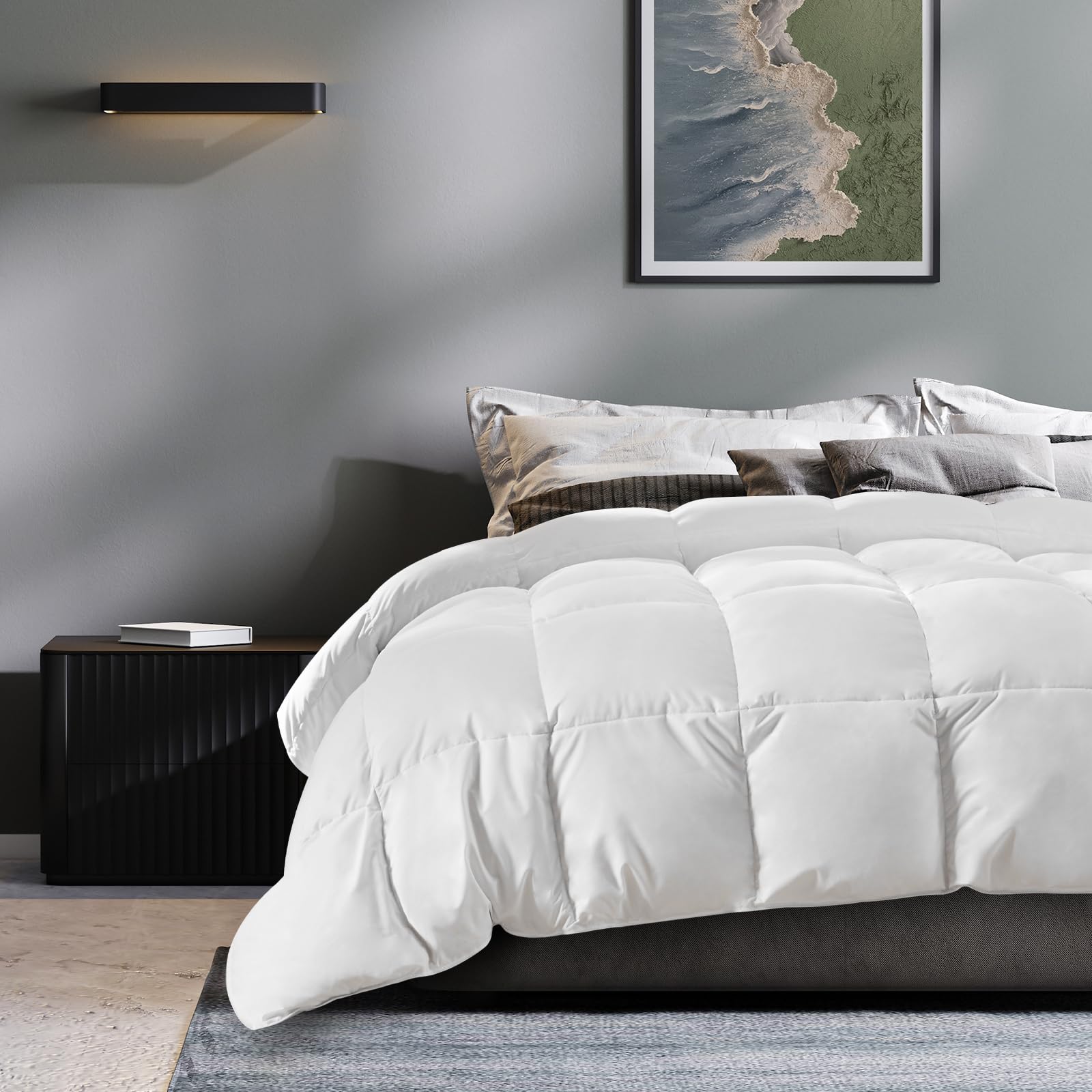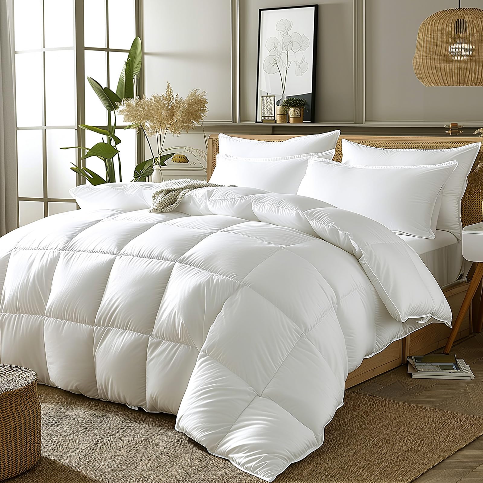 - PREMIUM MATERIALS: The fill of this luxury feather down comforter is made of 95% waterfowl down & feather fiber, with a large amount of down filling that will keep you warm and cozy after years of use. The down duvet insert cover is made of ultra-soft microfiber, which is soft to the touch and will make you sleep as if you were lying on top of a cloud!