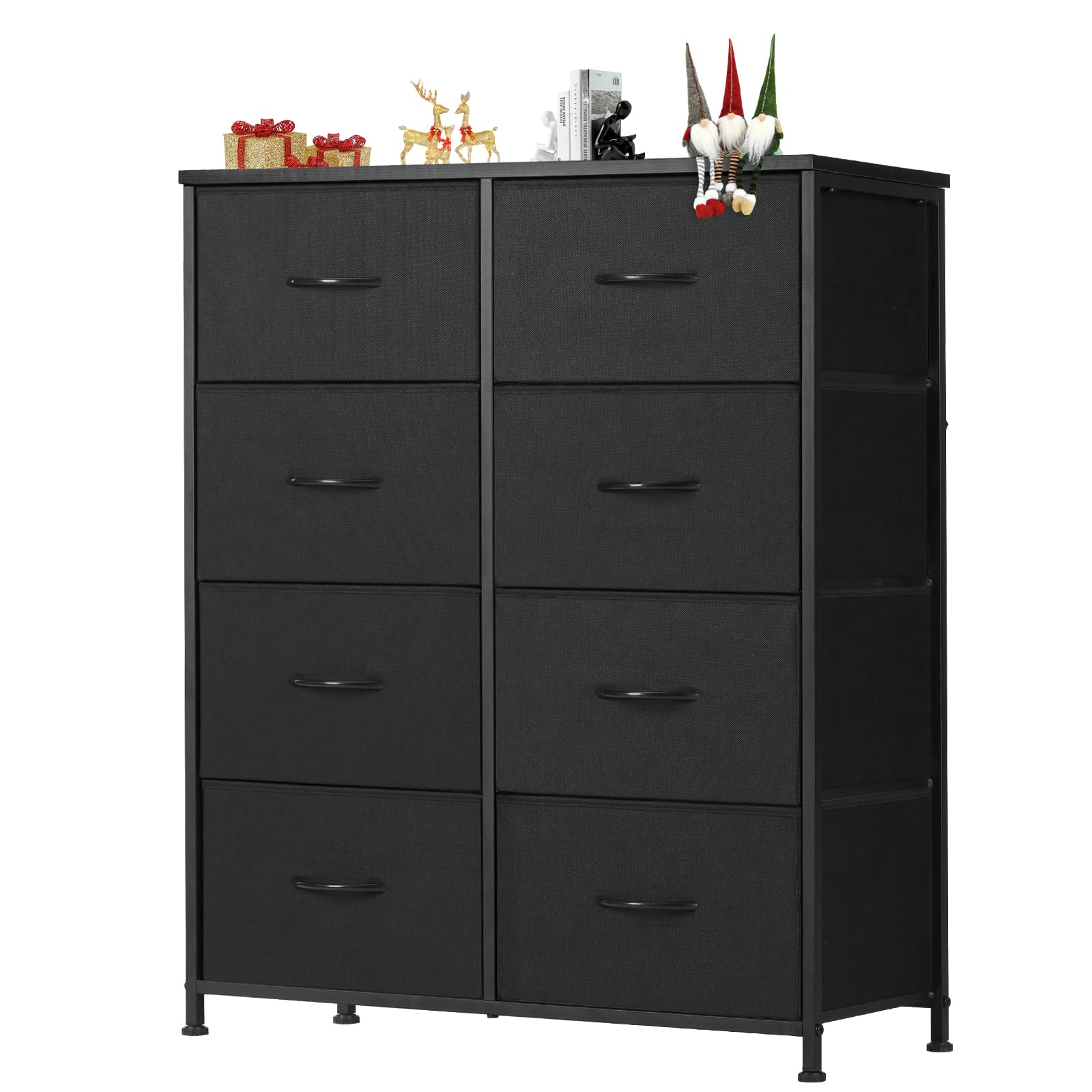 - For easy storage, 8 storage space drawers are offered. These foldable deep drawers are spacious enough to provide endless organizational possibilities. The wooden top of the dresser organizer is great for lamps, clocks, glasses, and other daily essentials, keeping them in your reach.