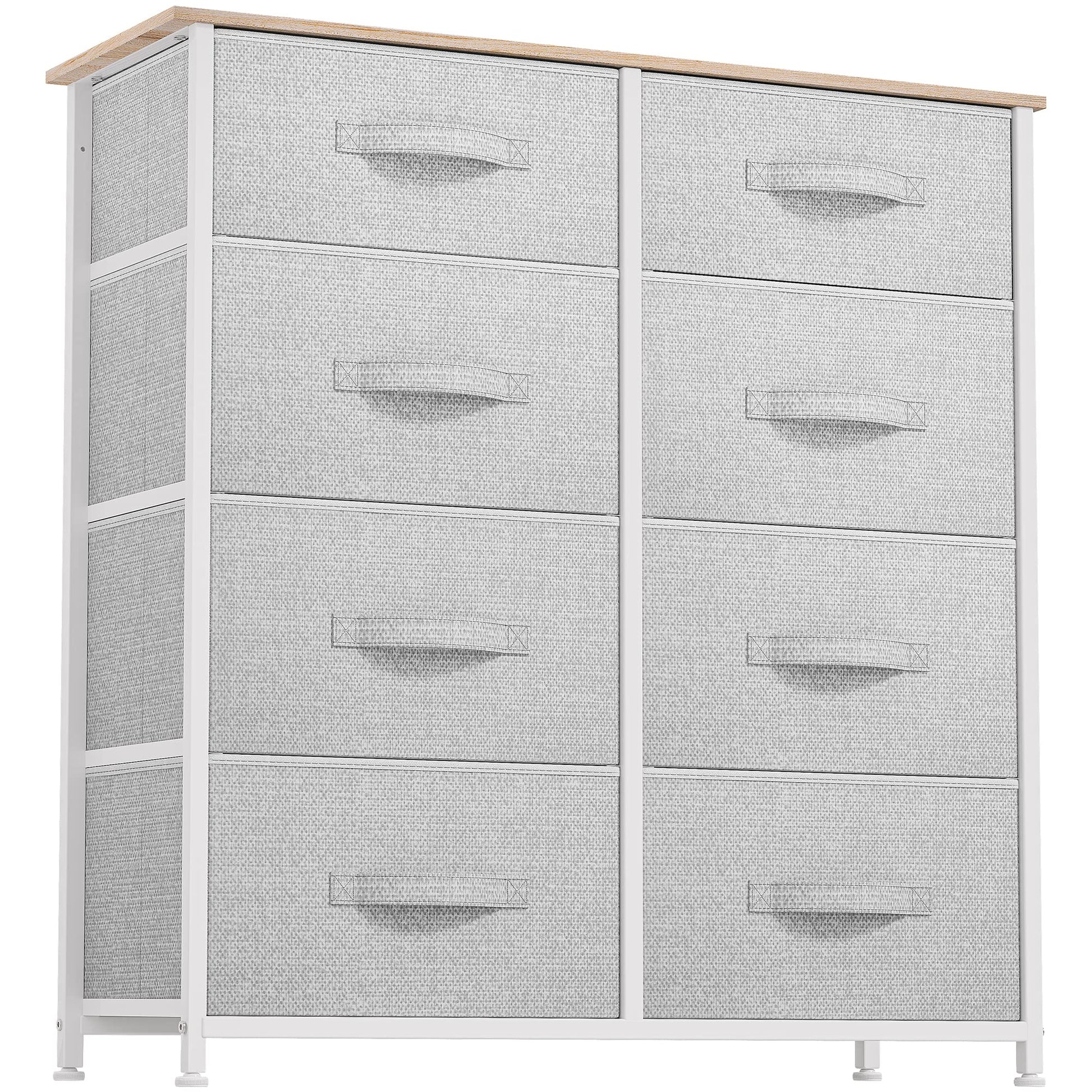 - ROOMY FABRIC DRESSER- 8 deep foldable drawers are spacious enough to hold your clothes and daily necessities; Large wooden top is great for showcasing your lamps, clocks, glasses, photos, etc.