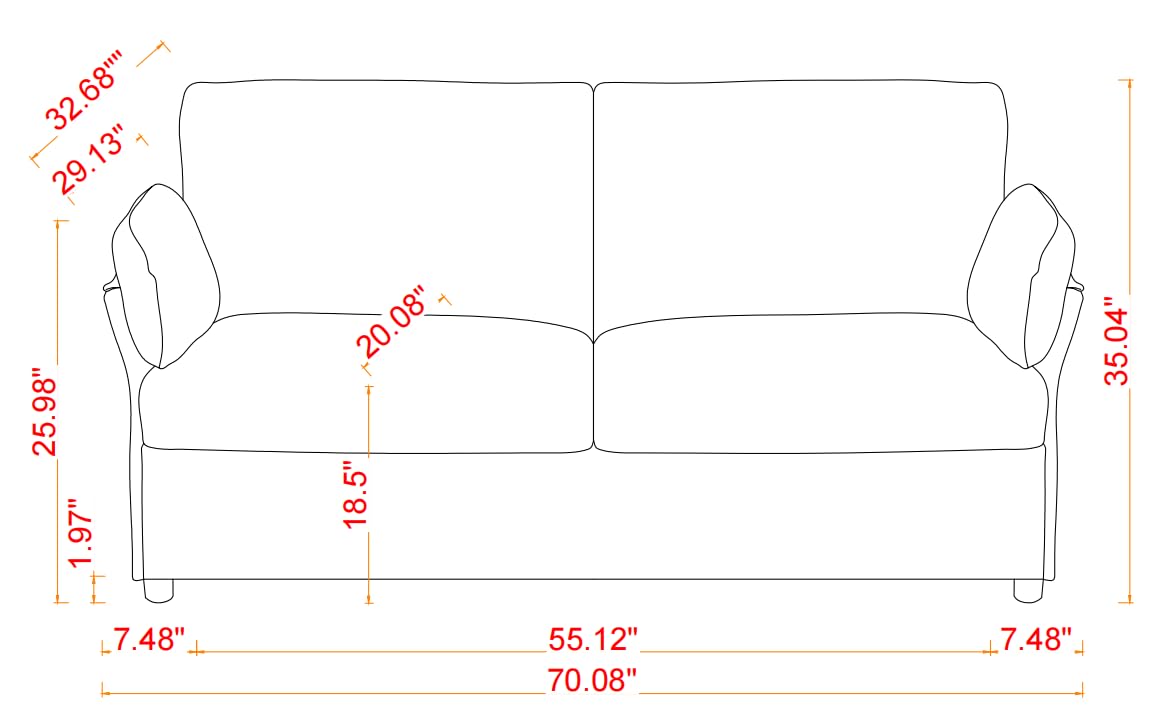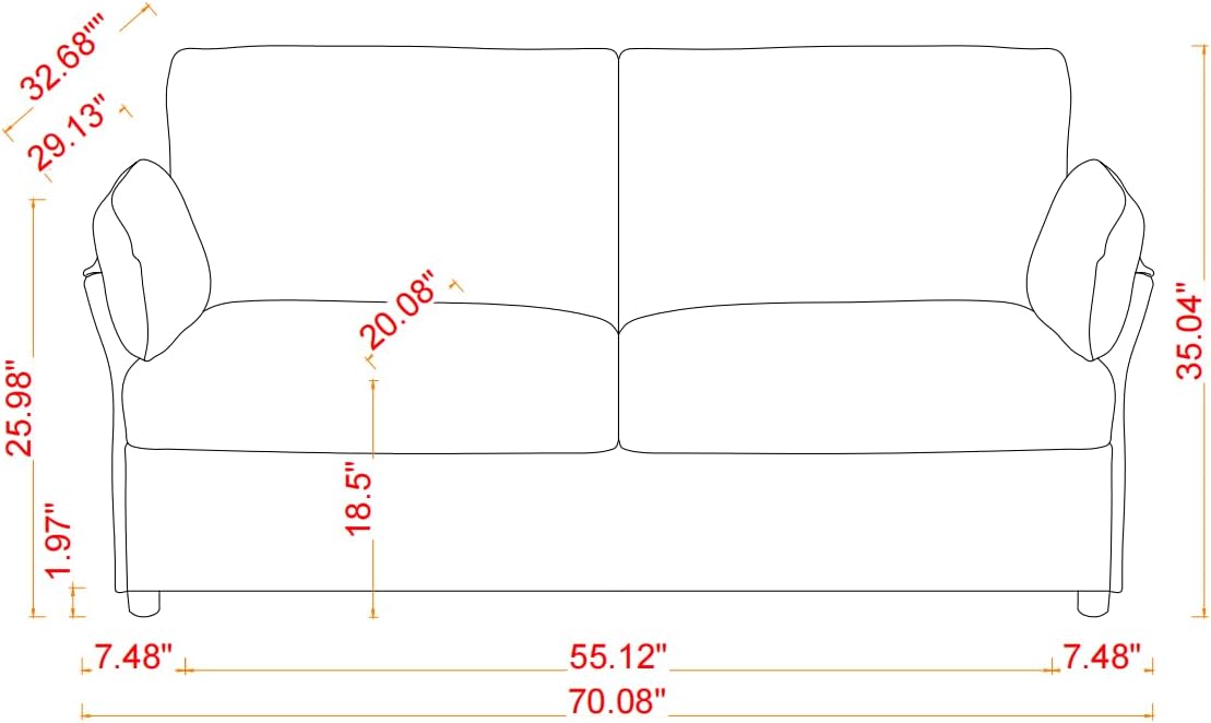 - Easy Assembly Upholstered Loveseat Sofa & 1 Package :Overall Product Dimension:70.08”*32.68"*35.04"H.Easy to put together with clear Instruction.