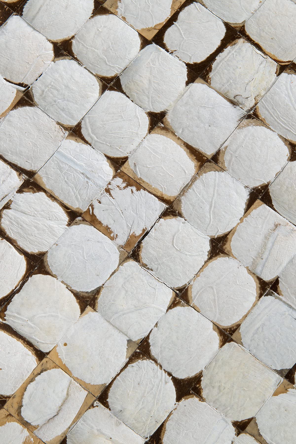 - Handcrafted Artistry Each table is made from individual pieces of coconut shell, meticulously painted and shaped into squares, creating a stunning mosaic pattern.