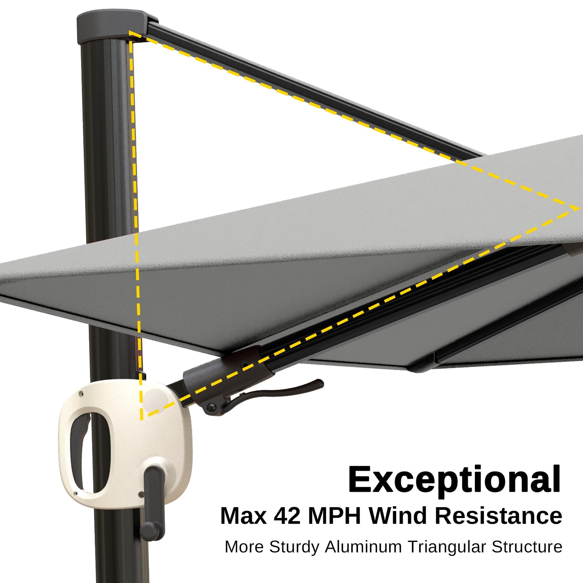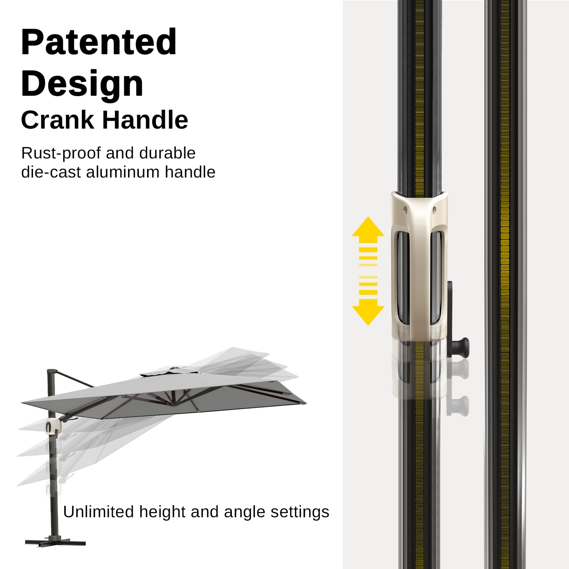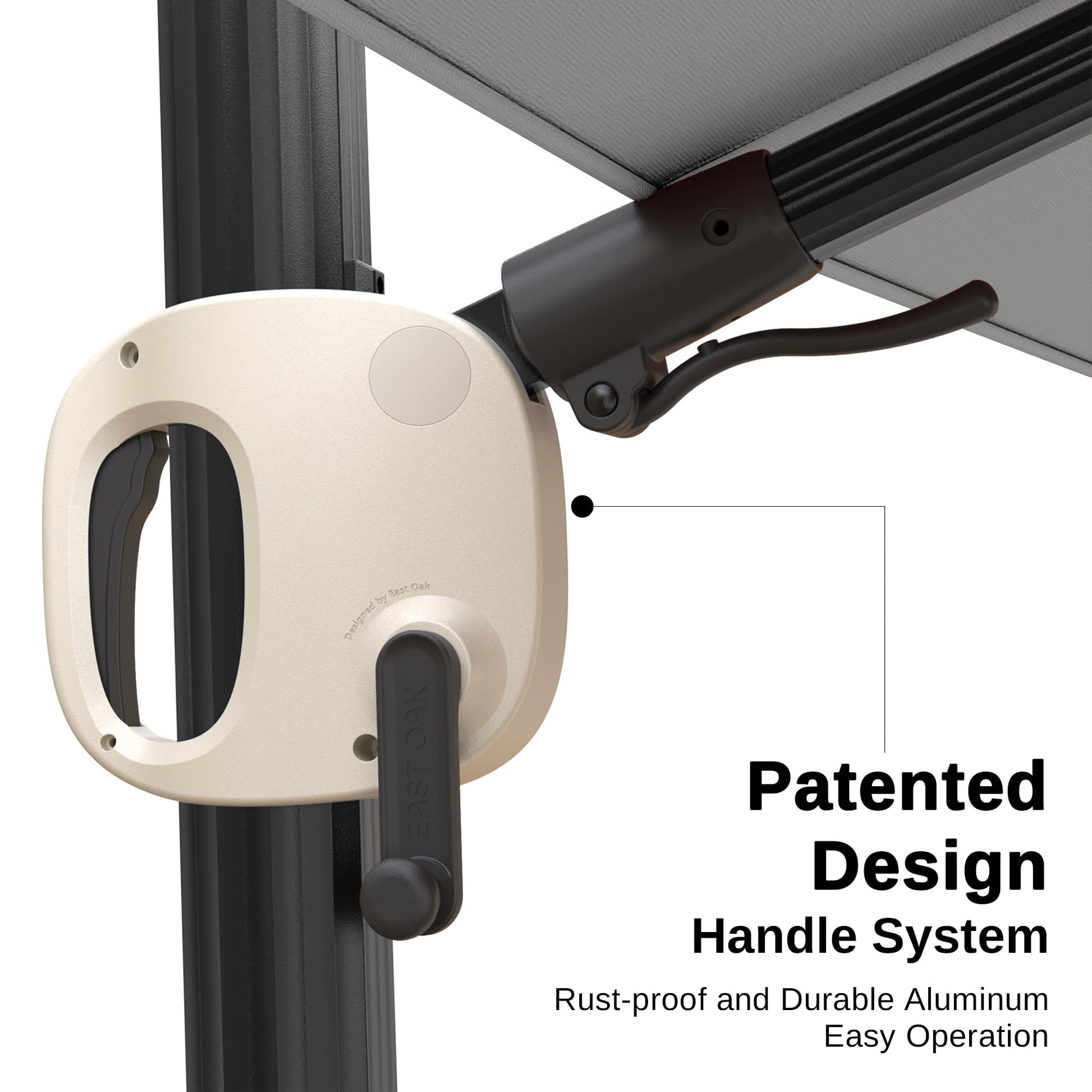 - Fully an upgraded super large aluminum alloy handlebar system with a patented design. Thicker and more durable, it's now easier to open and close the cantilever patio umbrella in just a few seconds