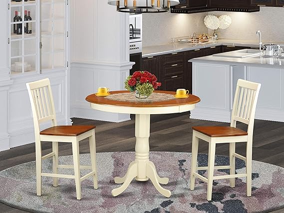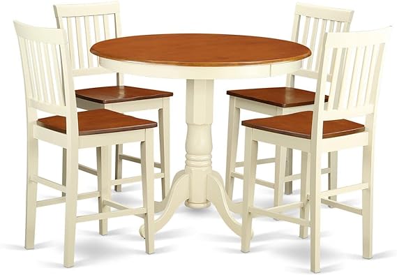 JAVN5-WHI-W 5 Piece Counter Height Dining Set Includes a Round Dining Table