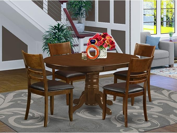 - WOOD TABLE SET FINISH: The kitchen table in this contemporary design is truly remarkable, boasting an Espresso color. The accompanying dining room chairs are equally impressive, featuring seats made of Faux Leather and legs crafted from Espresso wood. Our modern dining table set is completed with a top-notch finish, ensuring a stunning aesthetic that enhances the beauty of any dining area.