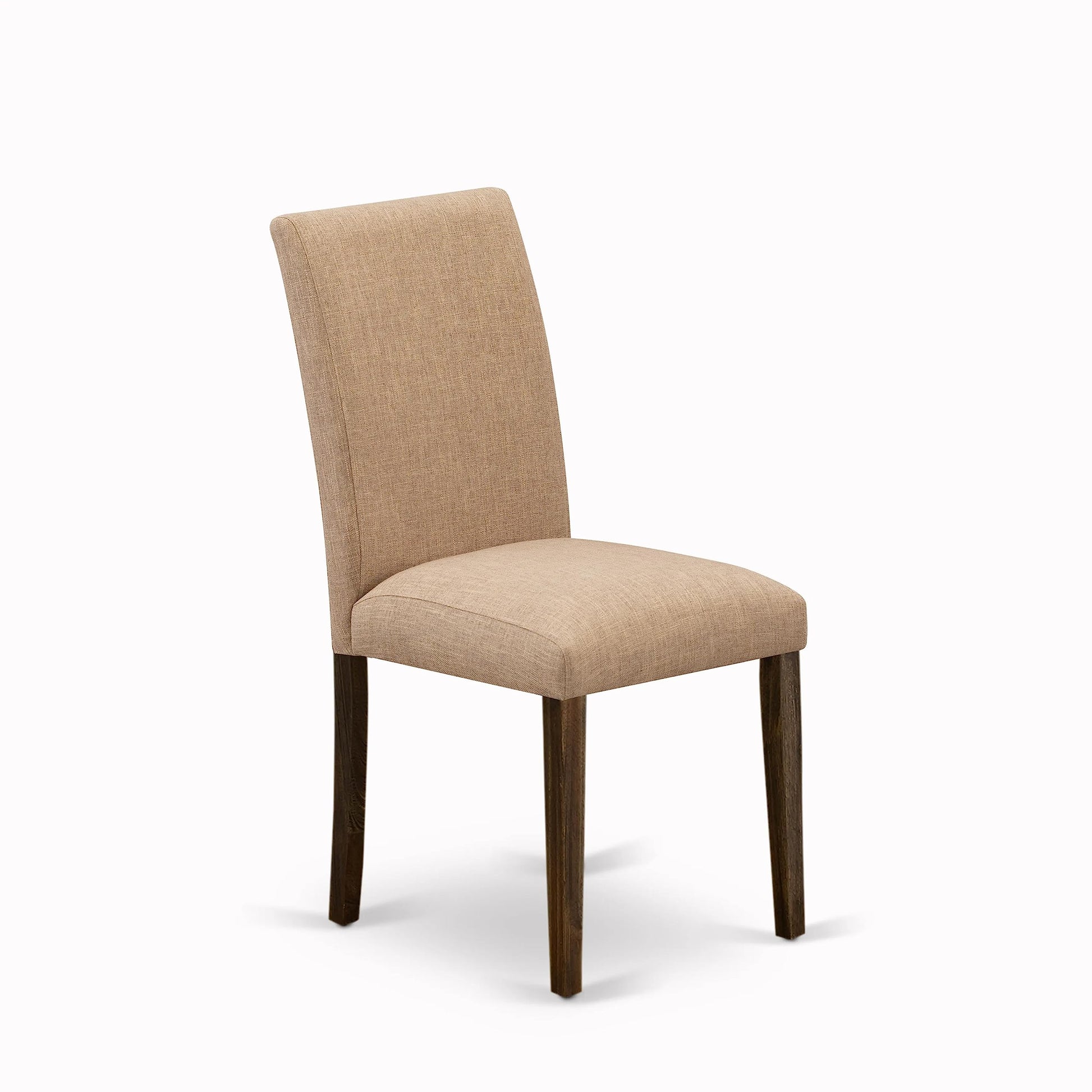 - DINING TABLE SET FINISH: The dining table and contemporary chairs, finished in Distressed Jacobean, accentuate your dining area's beauty. Their modern design harmonizes effortlessly with any decor. With its classic parson style, the chair exudes a sense of familiarity, and the Light Sable Linen Fabric and sleek design impart a modern elegance. The coordinated color scheme between the chair set and the table offers an appealing contrast that infuses the kitchen with a positive atmosphere.