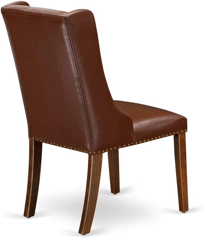 - MODERN DINING CHAIR SEAT MATERIAL: These Parsons dining chairs boast comfort with their Brown Faux Leather seats featuring a Button Tufted Chair Back and supported by wooden chair legs. Adding a touch of innovation to any dining room, these upholstered dining chairs provide excellent stability. Their versatile design allows them to seamlessly complement any decor, while the smooth Faux Leather Seat ensures customers' comfort throughout their dining experience.