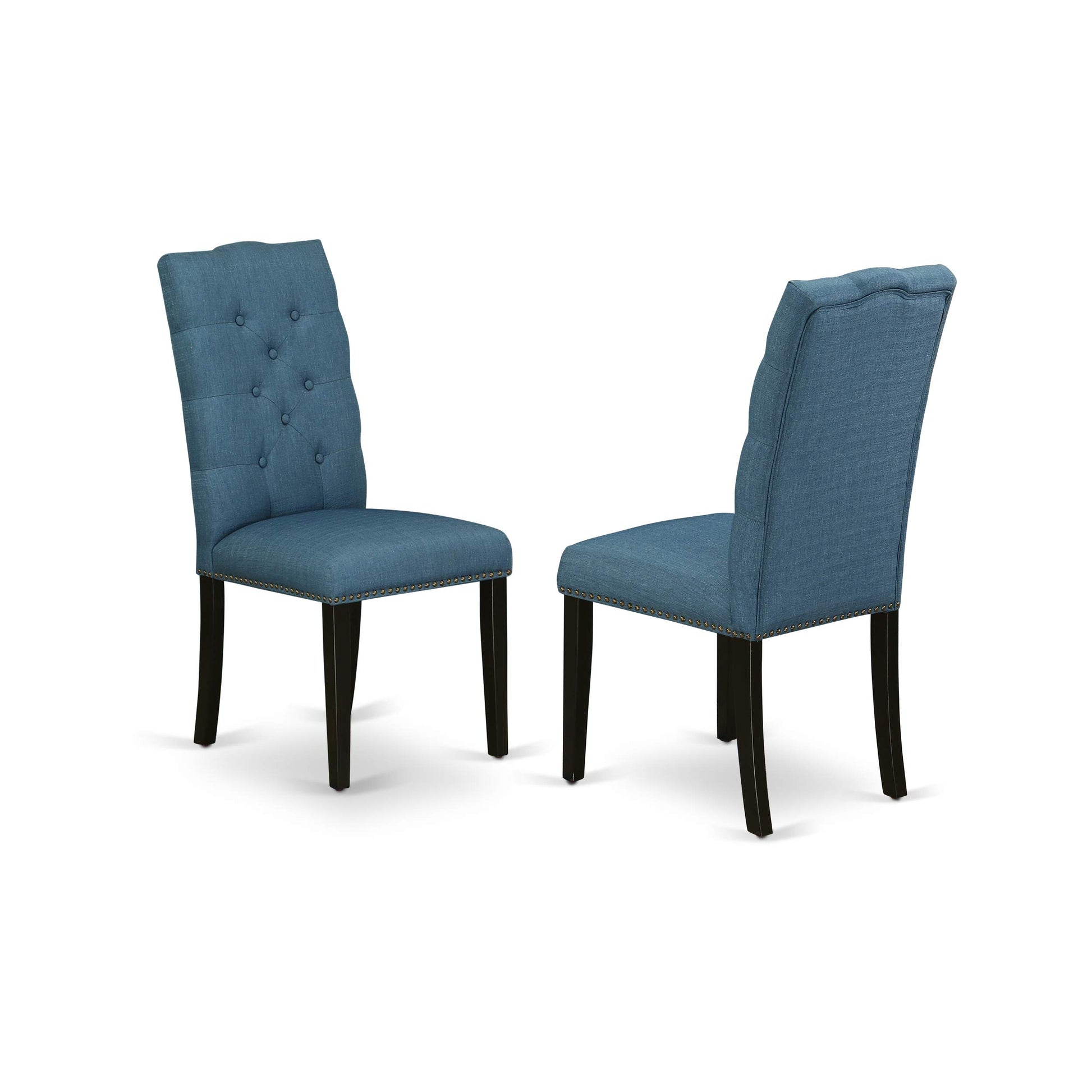 - DINING TABLE SET FINISH: Our exquisite dining room table showcases an Off-White rectangular tabletop with Wire Brushed Black Wooden Legs. The accompanying parson dining chairs feature Mineral Blue Linen Fabric upholstery and Wire Brushed Black wooden legs. This combination of style and comfort effortlessly complements any dining area decor.