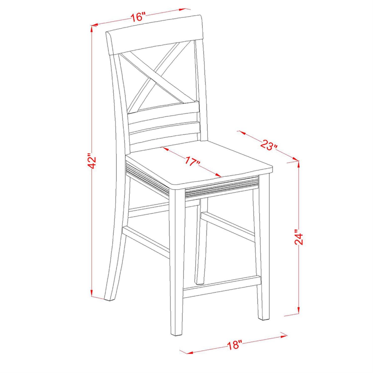 - ITEM DIMENSION: The Dining Table Dimension: Length: 48; Width: 30; Height: 36. The Dimension of the Kitchen Chair: Length: 23; Width: 18; Height: 42.