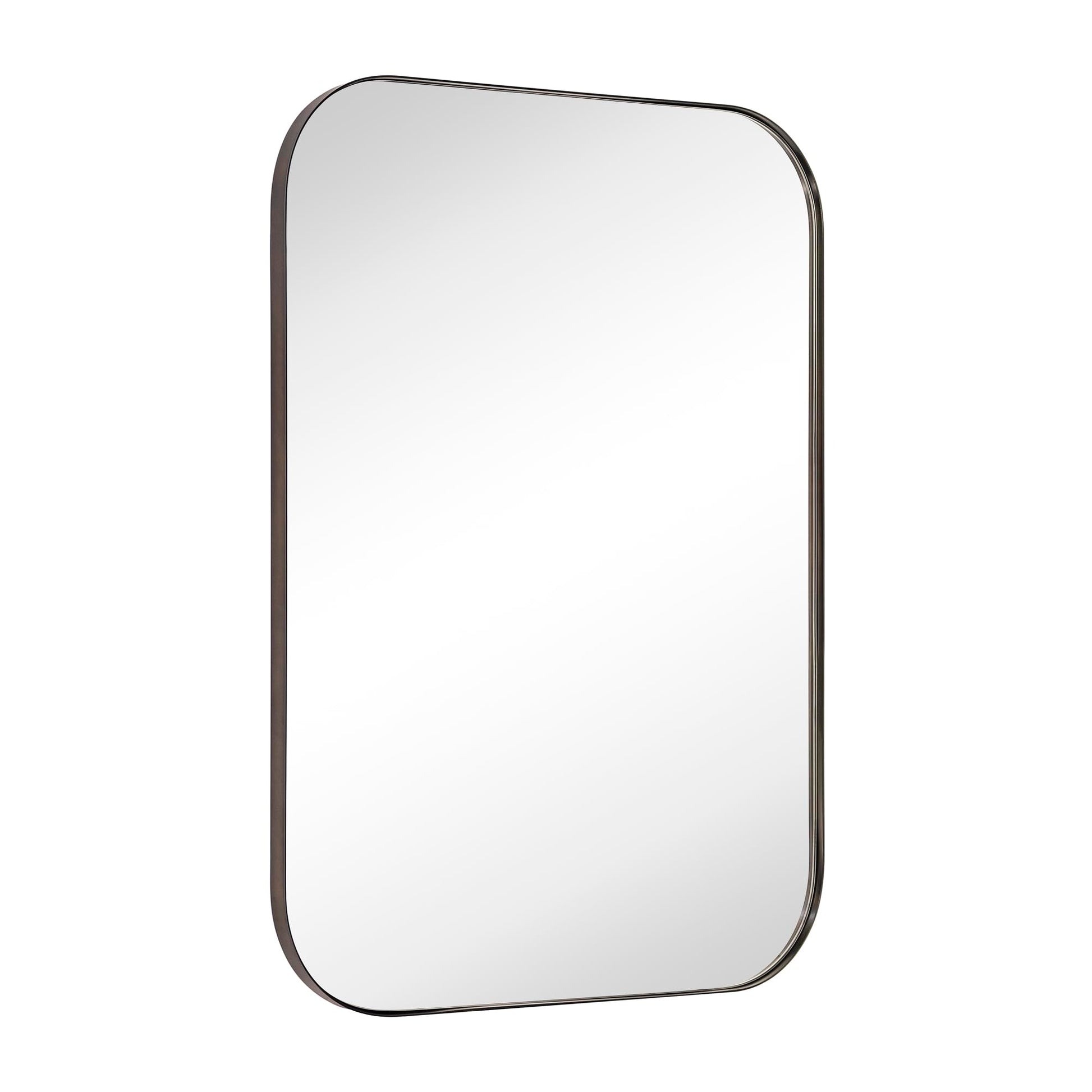 - STAINLESS STEEL SEAMLESS METAL FRAME: Our darkened oil rubbed bronze rounded edge rectangle mirror uses preminum quality stainless steel material , menawhile there is NO seam on the metal frame to achieve a elevated look . Rust and Corrosion Free when wall mounted, designed for bathroom grade use