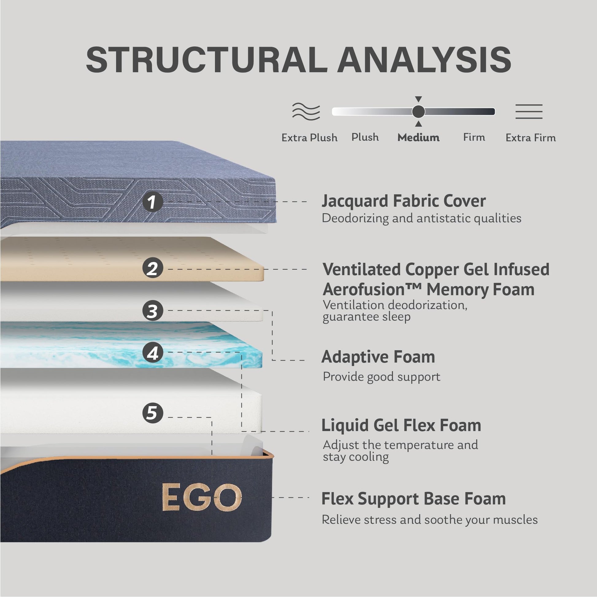 14 Inch Full Mattress, Copper Gel Memory Foam Mattress for Pain Relief