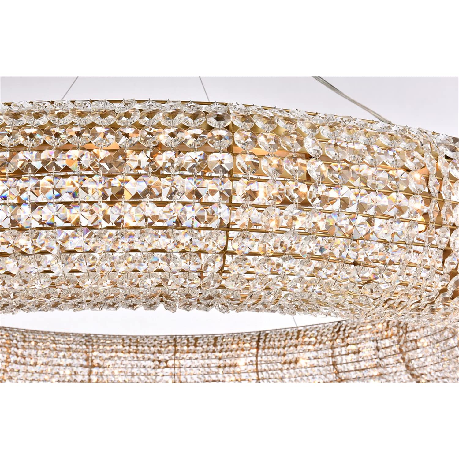 - Contemporary. Collection Name: Paris. Product Dimensions: 59"Lx59"Wx7. 1"H. Color Finish: brass. Hand Painted: no. Distressed finish: no. Hardware Finish: brass. Hardware Material: Iron. Fixture Material: Iron and Crystal. Product Shape: round. Assembly required: Yes