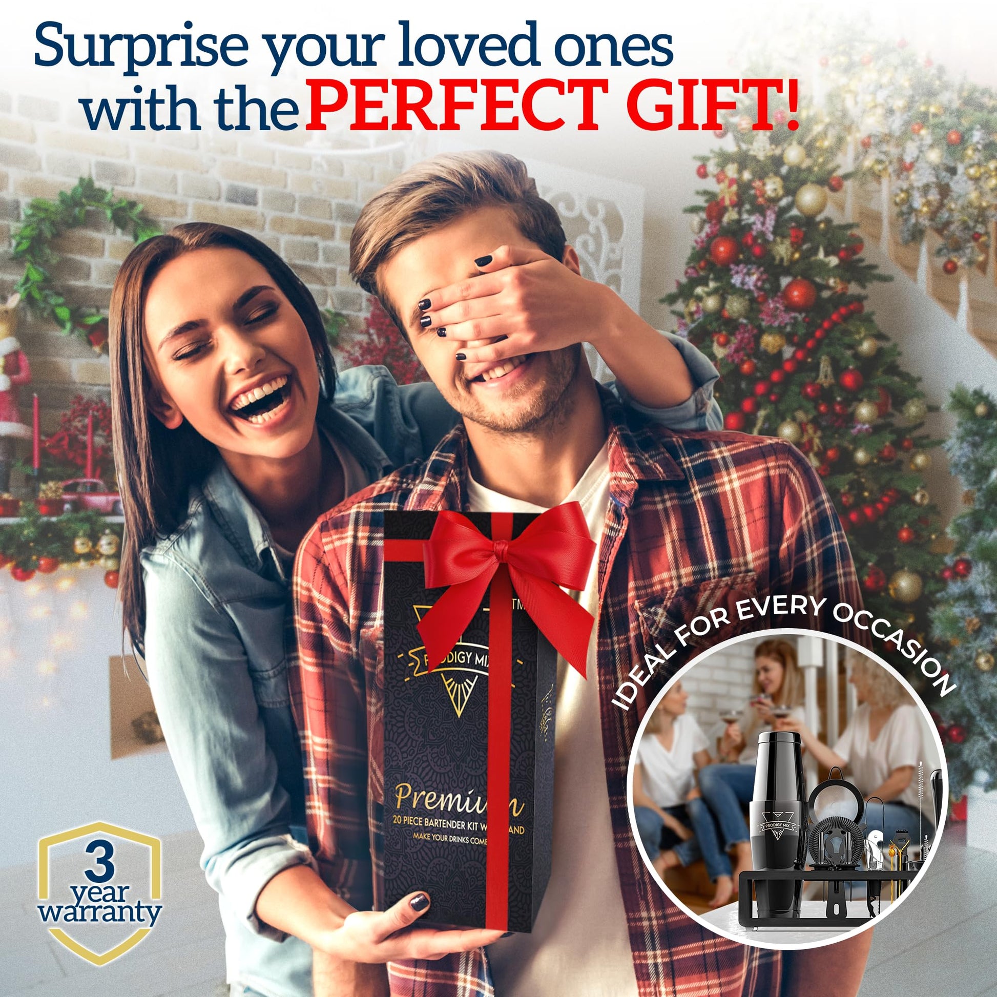 - THE PERFECT GIFT – Prepare to delight your loved ones. Our all-inclusive cocktail kit is packed inside a luxury gift box, making this martini shaker set the perfect gift for a cocktail lover.