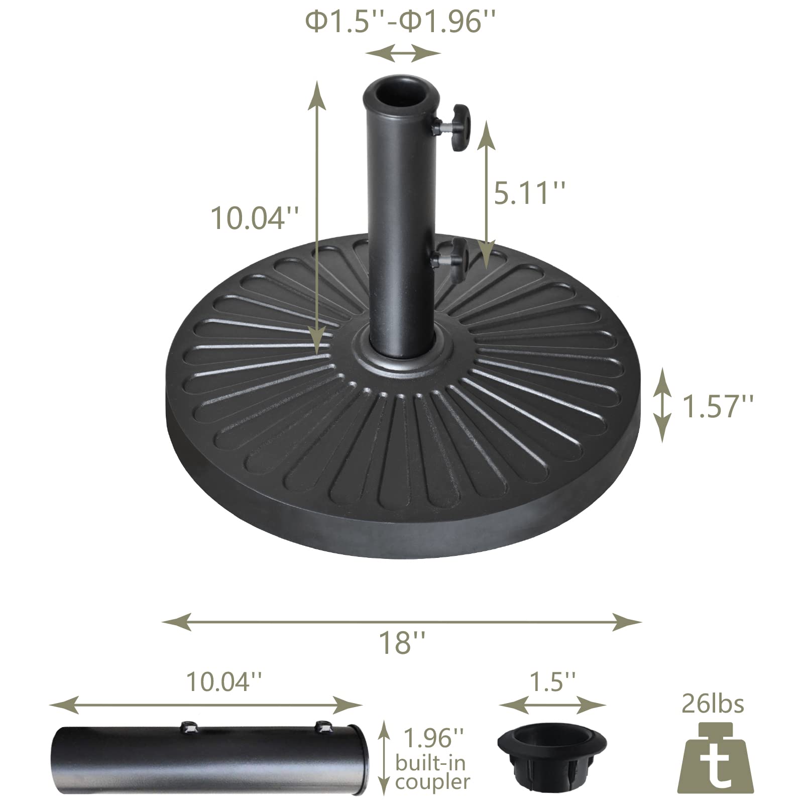 - Equipped with adjustable piston, a wide range of application, can be adjusted according to the thickness of the umbrella column.Umbrella Pole Diameter Range:φ1.5" - 1.96".