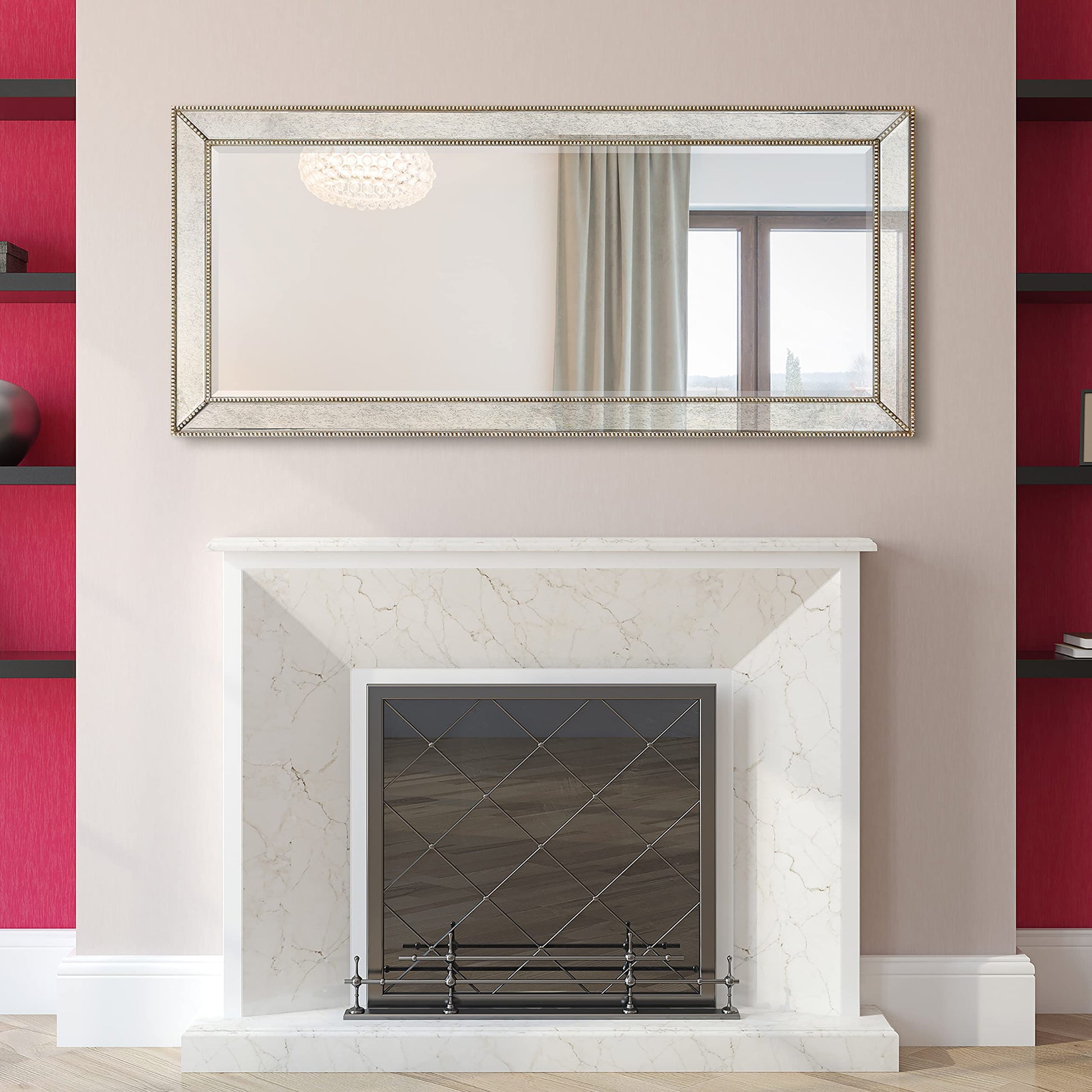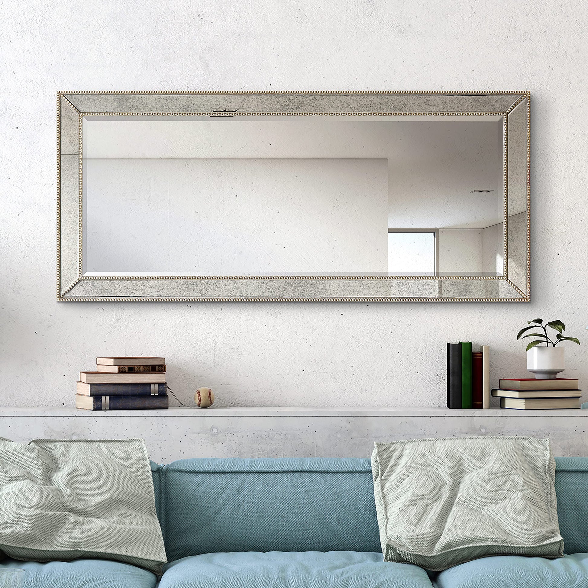 Solid Wood Frame Wall, Beveled Center Antique Mirror for Bathroom