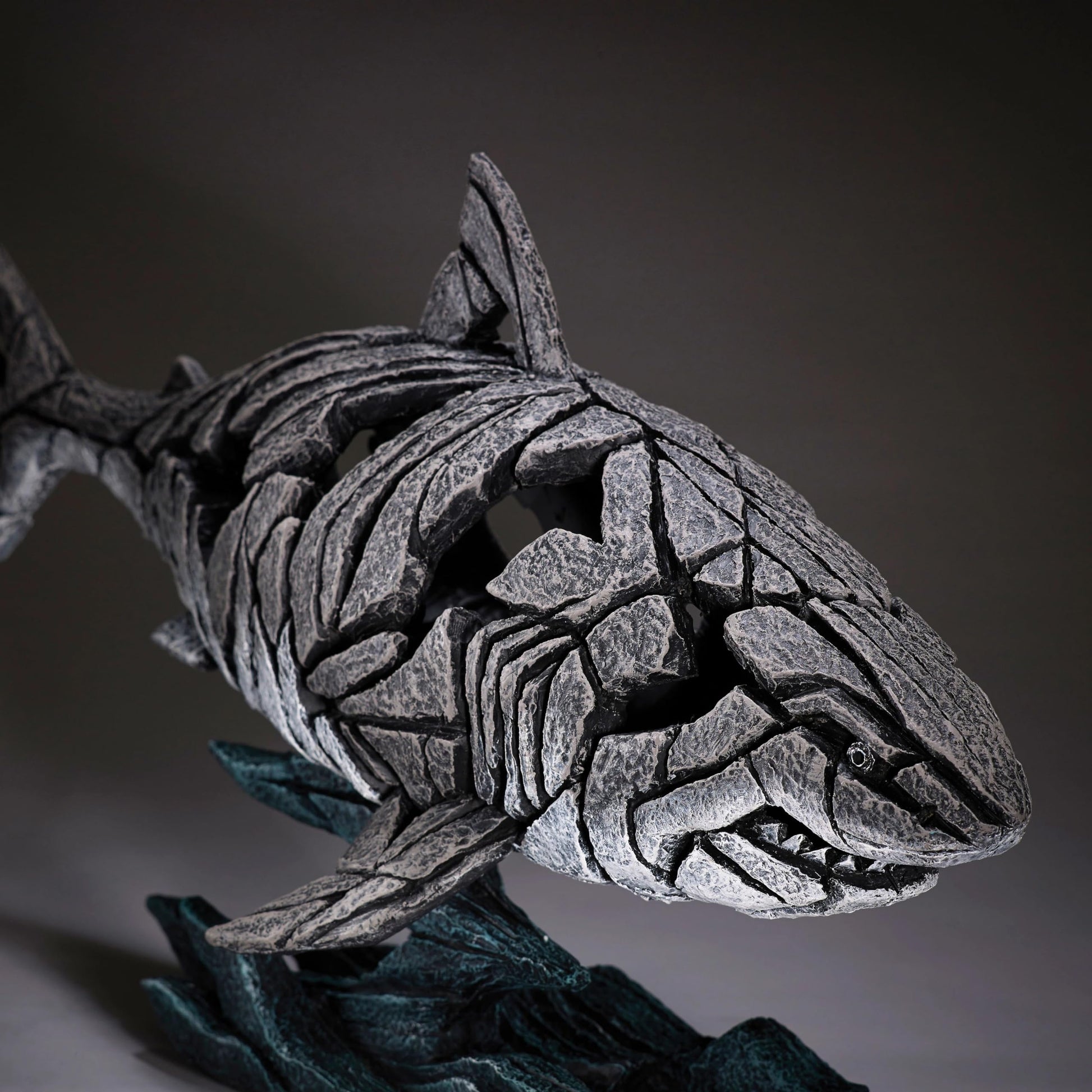 Edge Sculpture Shark on Wave Animal Figurine, 12.2 Inch, Grey and Blue