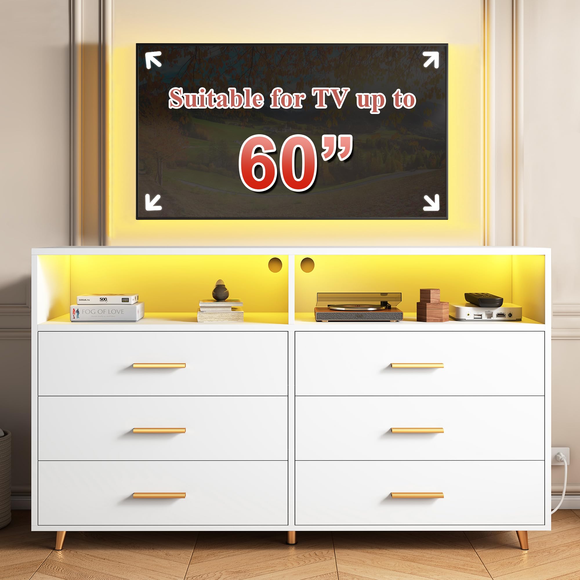 Dresser, Dresser for Bedroom, White Dresser with LED, Wood Dressers & Chests