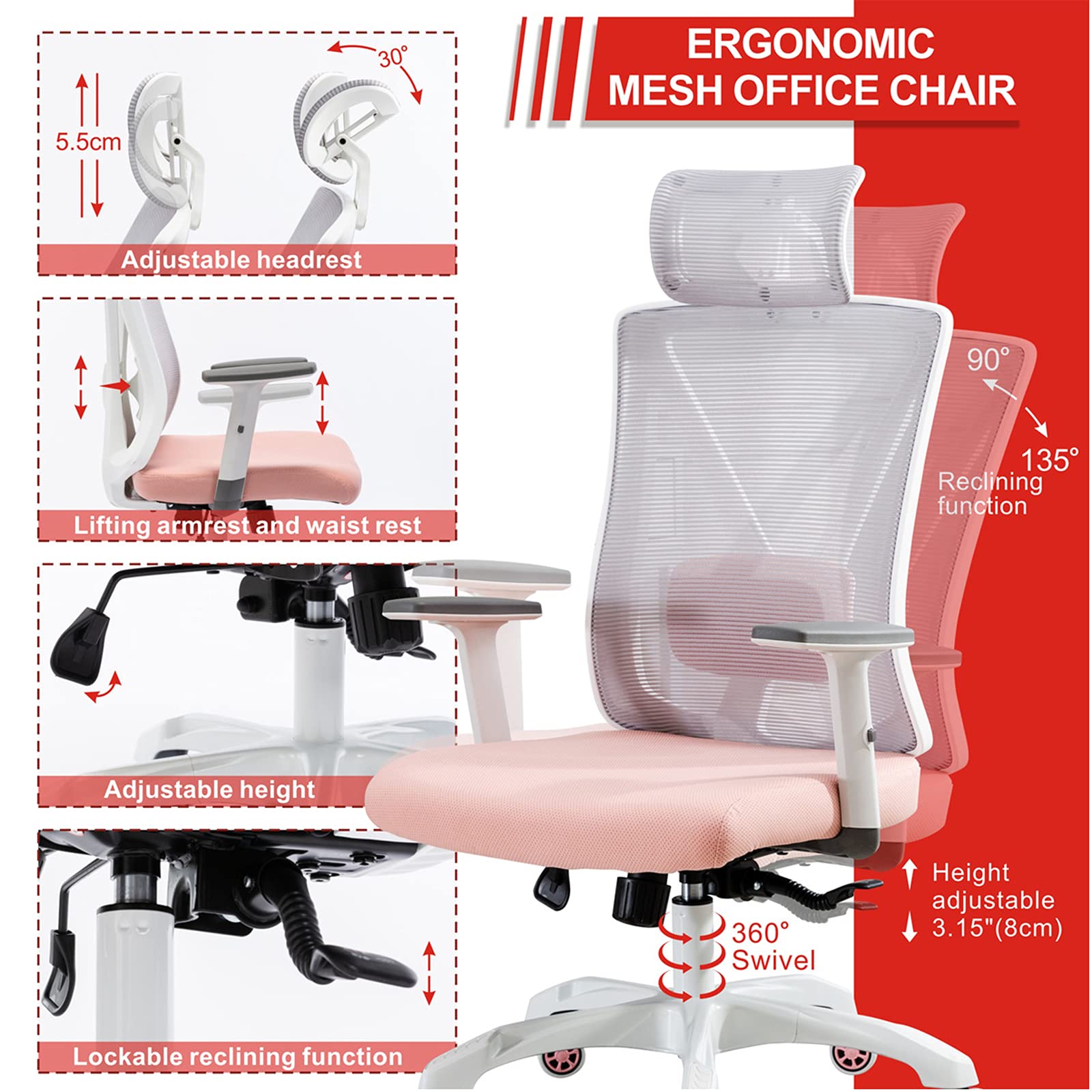 Home Office Chair with Adjustable Lumbar Support and Armrests Headrest Breathable