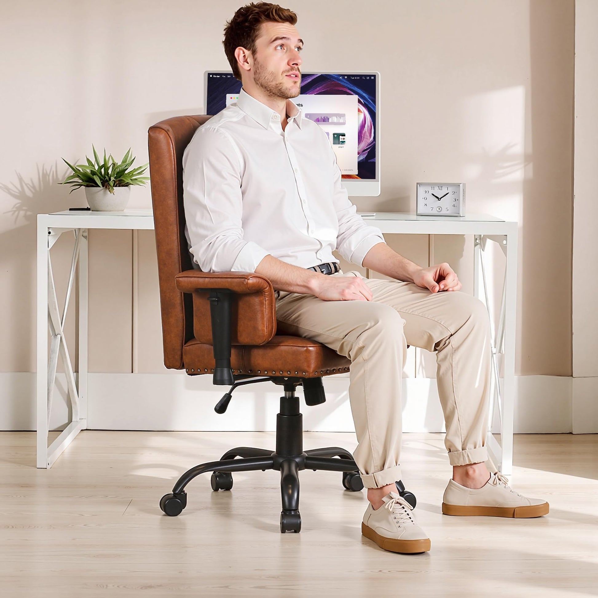The plush sponge cushion ensures all-day comfort, and the 45° adjustable armrests accommodate various working positions. Finished in a sophisticated brown tone, this chair combines professional aesthetics with functional design, making it an ideal addition to any home office or workspace.